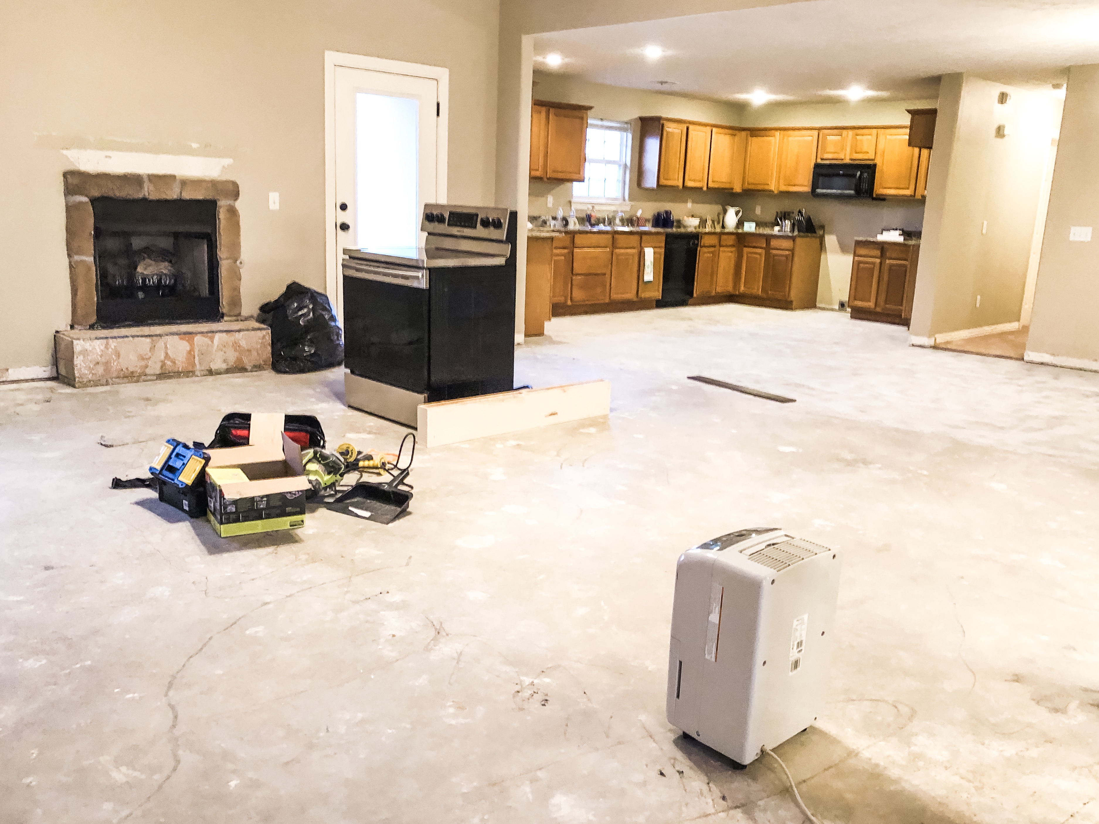 I am no quitter. If I decide that I want to do something, then I’m going to do it, but this glued down engineered hardwood gave me a run for my money. After a solid day of working, we did some quick math and figured it would take us about 3 weeks to get everything pulled up by hand even though it was proving more effective than the useless machine. While I was still stubbornly hammering away at the floor, J did some research and found a company that could come out and do the floor removal. If you are in the Northwest Arkansas area, I highly recommend them (Dusthogs) if you are wanting any floors removed because they work really quickly and don’t leave a speck of dust behind. It was awesome.