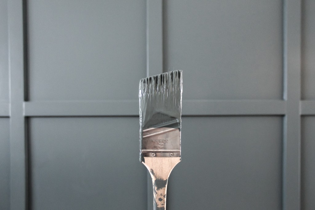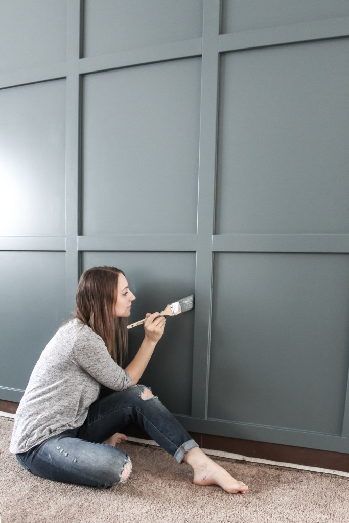 I really wanted to use a paint sprayer, but it was just not in the cards. My sprayer would not work for me, but I got a beautiful finish using a brush and a roller so all is well. Use the brush first to cut in the edges and then use the roller. Make sure that you roll over where you brushed to even out the texture. You can roll in whatever direction you want to get the paint on, but since the hardboard is such a flat surface, you need to be contentious of how you finish it or your roller marks will show. Before you move on to a new section, take your roller (don’t add more paint to it) and lightly roll over your section making slow, smooth, vertical passes.