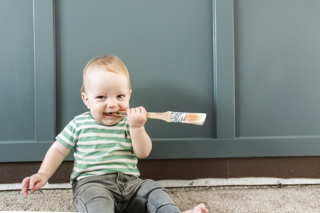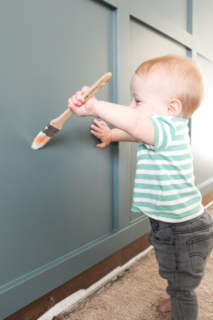 My little project buddy joined be for both coats. You think your arms get tired painting? Try holding an 11 month old the whole time, haha! But seriously, if I could do this with a baby attached to my hip, you totally can too!
