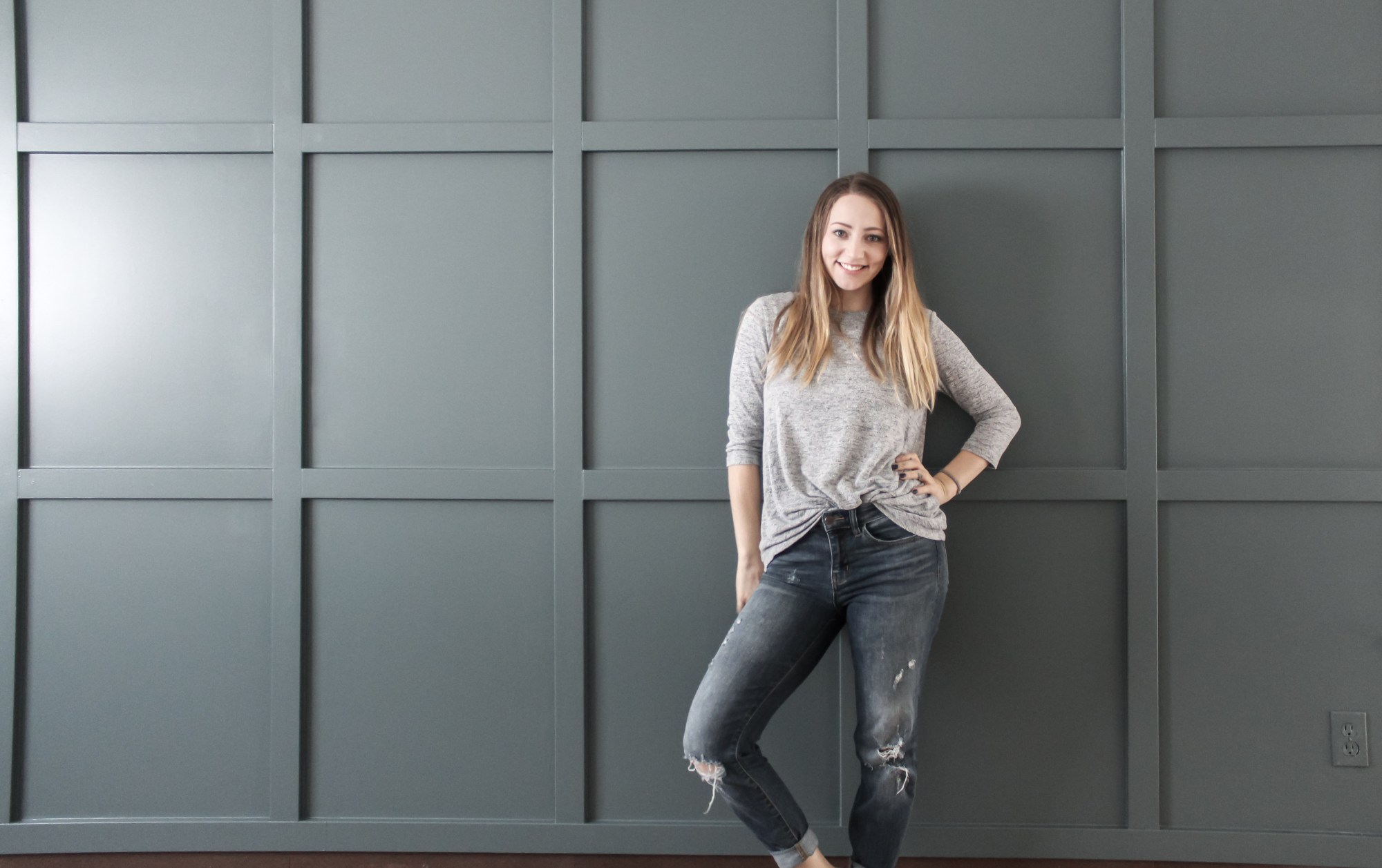 Super cool project and nice job! This may be a dumb question but in the main photo in this post – where you’re standing in front of the wall – is that the Knoxville gray? It looks soooooo blue. I love the color but am not clear which it is. Is it the same color shown in the main image in your blog post at https://withlovemercedes.com/2020/05/14/deep-blue-board-and-batten-one-room-challenge-week-2/?