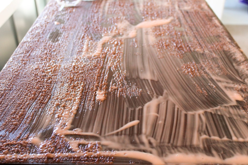 It will start to look really cool when it pulls the gunk out of your wood. Don’t worry, it’s not drying out. The top layer can look a little dry, but the layers underneath will still be wet. I left mine for about an hour and a half. The instructions say that you can leave it for up to 24 hours, but I wouldn’t leave it for much longer than I did. There were some spots that had dried out and were a little difficult to get off with just the hour and a half wait time.