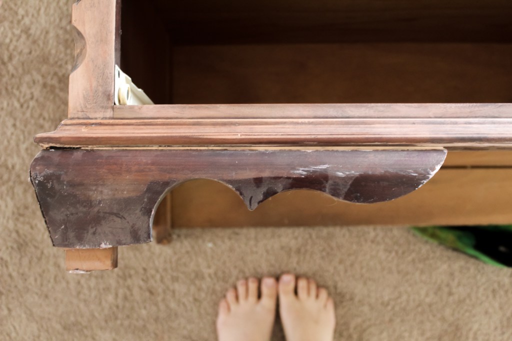 The only thing that I didn’t love about this dresser (besides the color) was the skirt around the bottom. It gave the piece a dated look and was not the look I was going for. I bought some new furniture feet to add, but when I removed the skirt I fell in love with the super simple feet that were hiding behind there! Again, not something I was planning on doing originally, but exactly what this dresser needed. I was worried about the arches being uneven and also considered attaching a little arch to the front, but you can’t see them anyway (the molding keeps the arches hidden) when the dresser is standing upright.