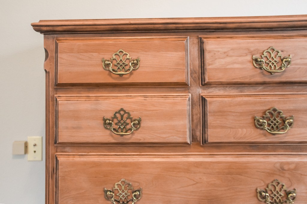 This week has been all about this beauty of a dresser and I have had so much fun, but it has also been so much work. I started with an old, dark, reddish-brown dresser and what I have now is a gorgeous honey colored piece and I am drooling over how it turned out. I do wish that it was a little bit lighter, but I still love the finished product!