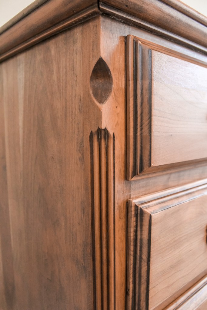 Between the scraping, the wiping, and the sanding, this project was really hard on my arm (I’ve had four pretty intensive elbow surgeries). I ended each day with a pretty swollen elbow, so one of the things I was dreading was needing to manually sand all of the little crevaces. I ended up really loving the character that the darker cracks gave it, so I just left them! Leaving the dark accents wasn’t something that I planned on doing originally, but it makes the piece so much better than I imagined.