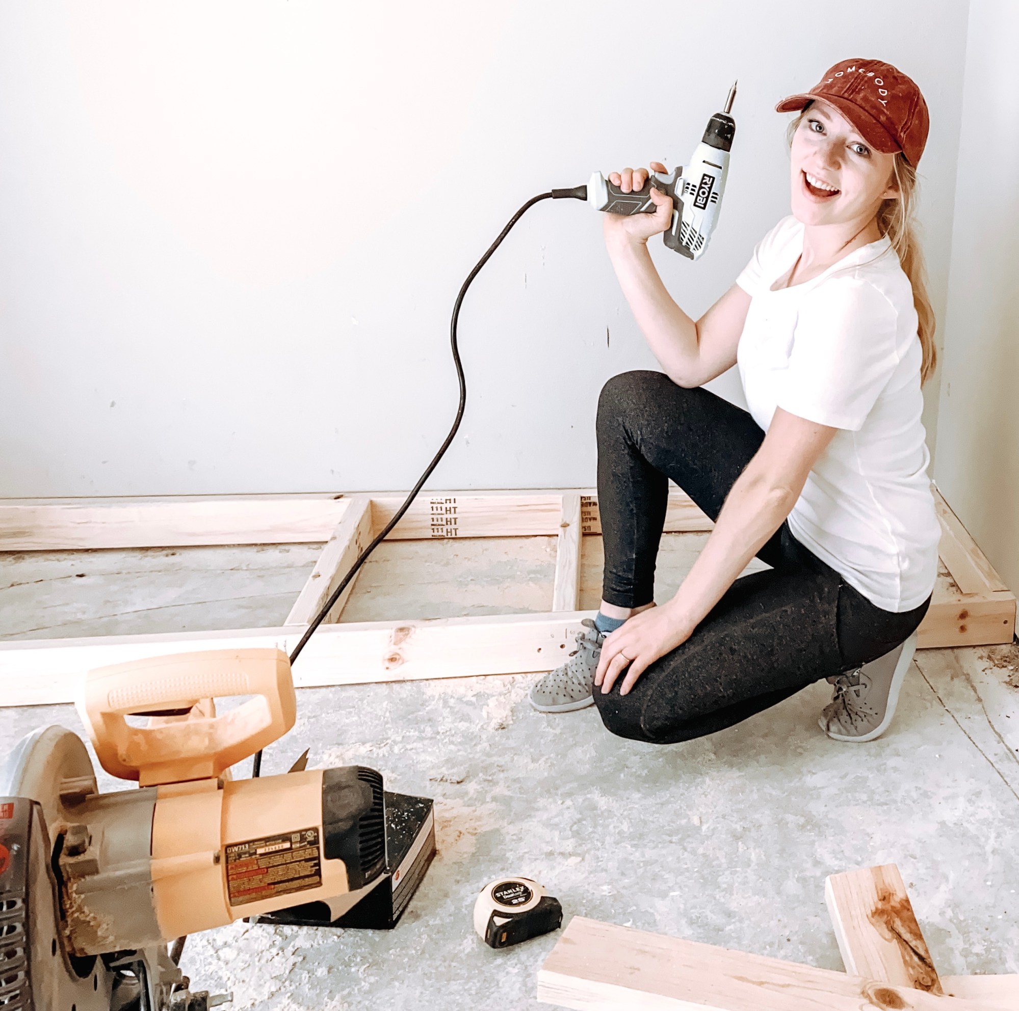 With a clean slate, I could start the build! First, I built a base out of 2x4s. Basically, I constructed a box and then screwed it into the studs. I also made sure that there was a 2×4 running under where every divider would go.