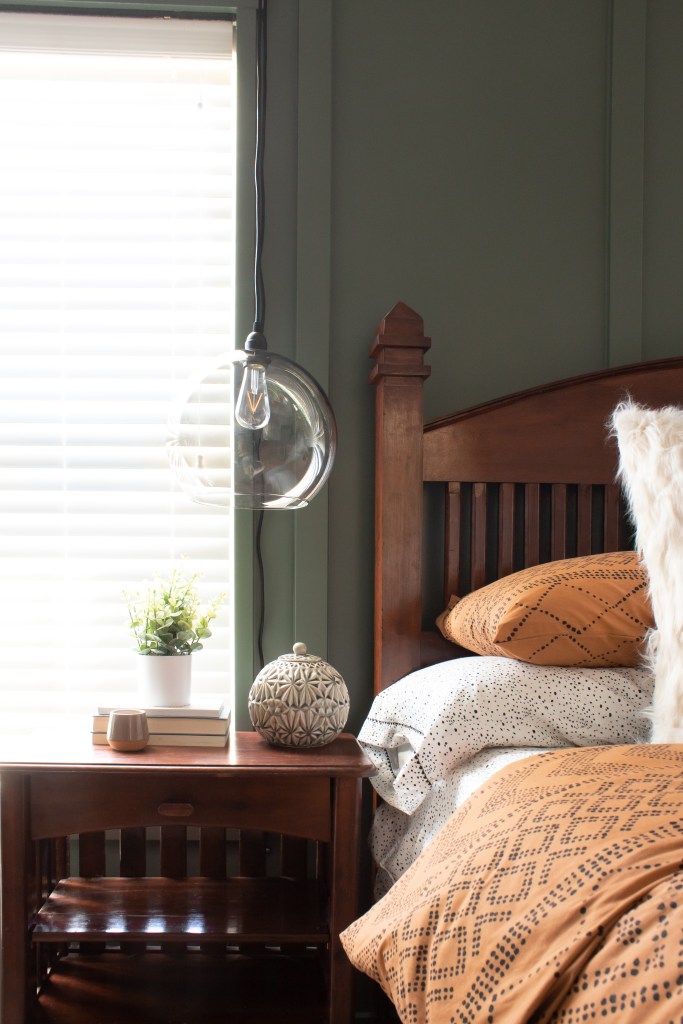 Wow! This bedroom makeover has been a whirlwind in the best way. My friend asked me to come help her install a green board and batten wall and it morphed into this amazing full bedroom makeover. The furniture pieces are all family heirlooms, so we didn’t touch those but everything else got a total facelift. I incorporated some bright, fun pieces since she loves color and funky items and the final result is absolutely perfect for her.