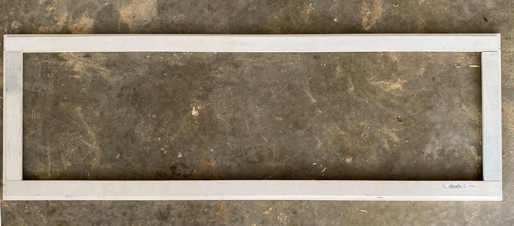 Then I took the width measurement (16.25”) and subtracted the width of my 1x2s (which is 1.5” twice, since I have a 1×2 on both sides). 16.25” – 1.5” – 1.5” = 13.25”. That is the length of the horizontal pieces, so I cut 2 of those for each door.