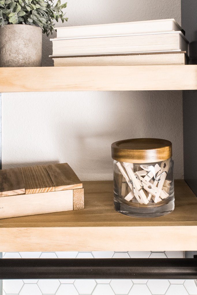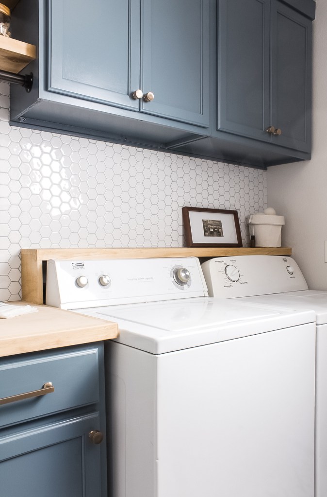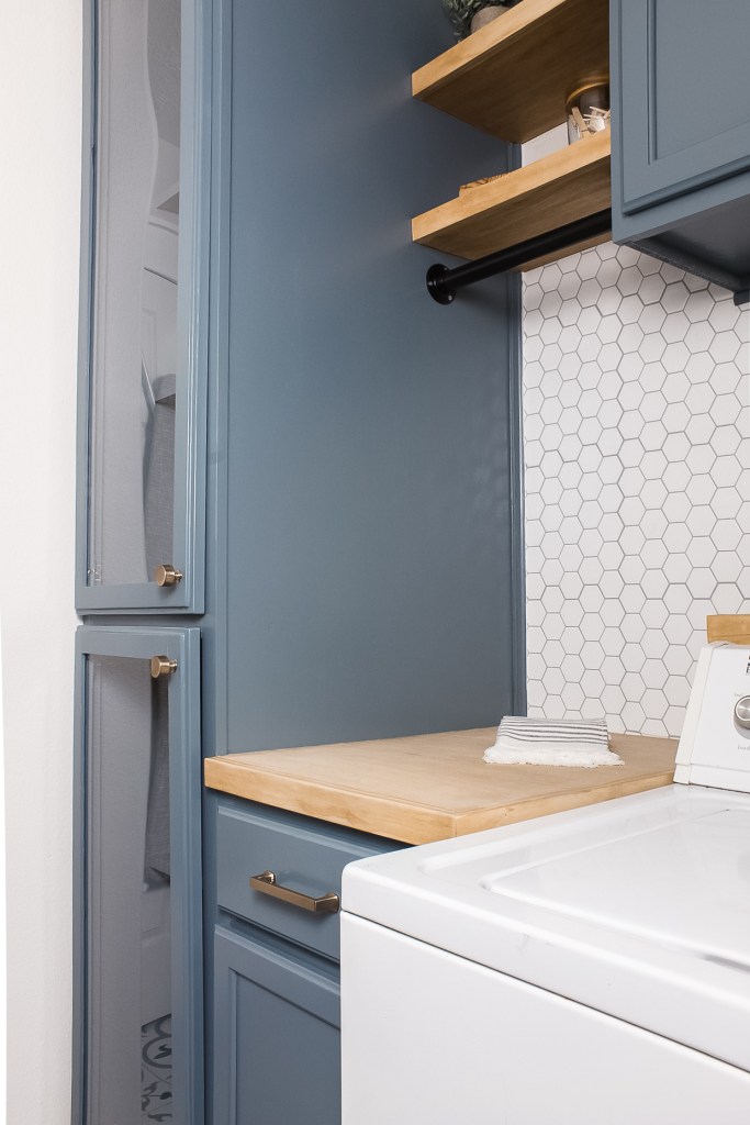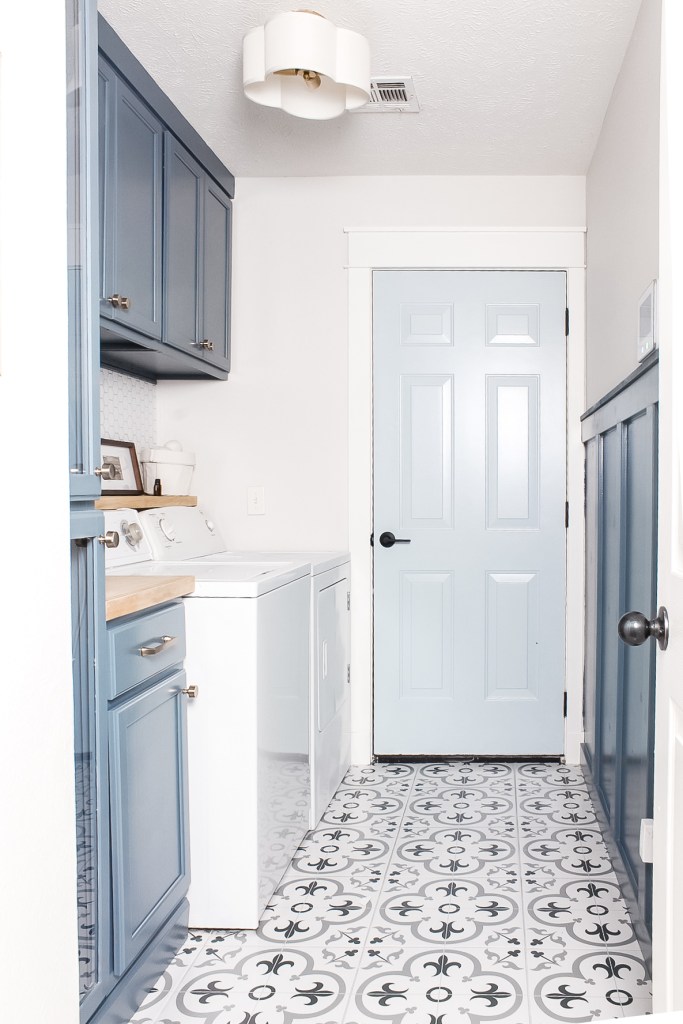 I had two pain points in the laundry room before. The first being that it offered absolutely no storage. In a home that only has one non-bedroom closet, I felt like I could definitely utilize this remodel to provide more storage solutions. The other pain point was just that it was a little boring. I added the patterned tile several years ago and the door was already a fun color, but the room still felt a little… boring and blank.