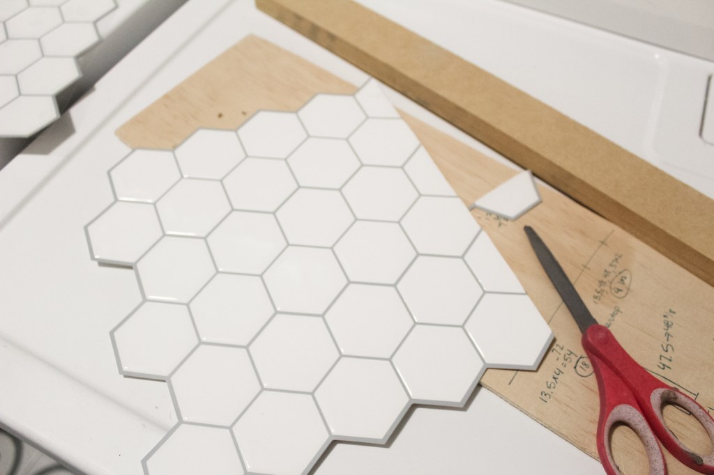 If you have any funky cuts, it is extremely easy to notch out the sheet by cutting it with scissors! Honestly, it definitely felt more like a craft puzzle then real tiling (in the best way).