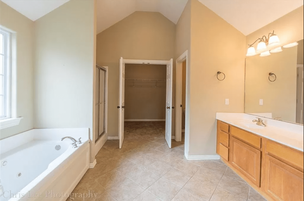 Here are a few before photos. Nothing horrible, but definitely not our style. The bathroom was a huge selling point for me on this house because I could see all the potential in this space.