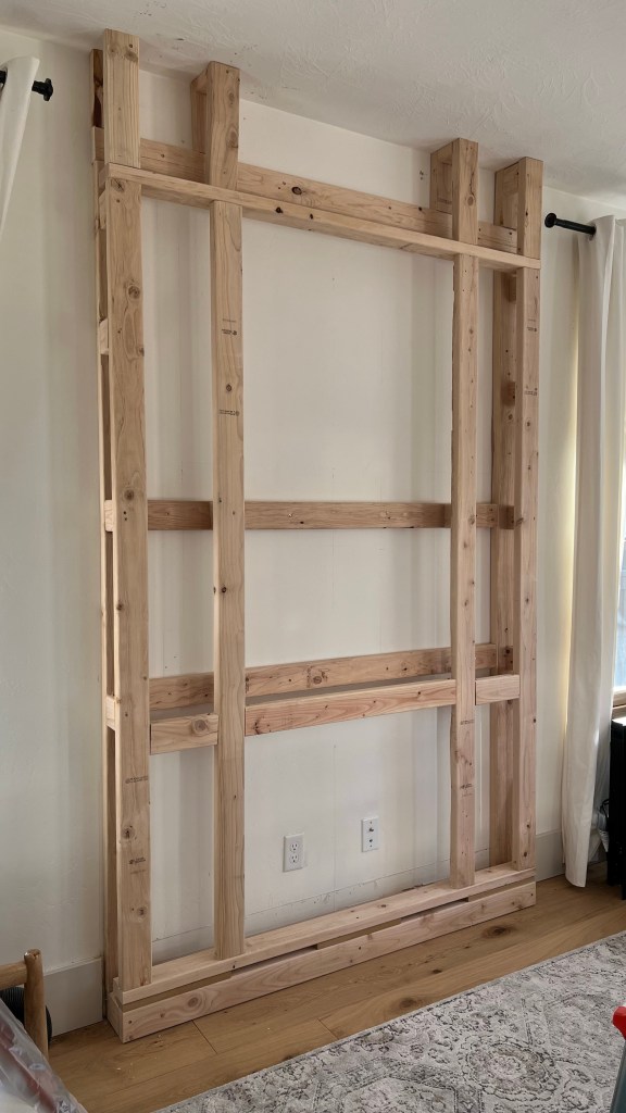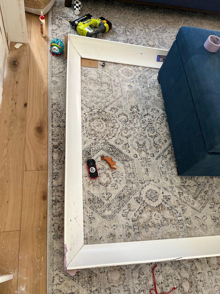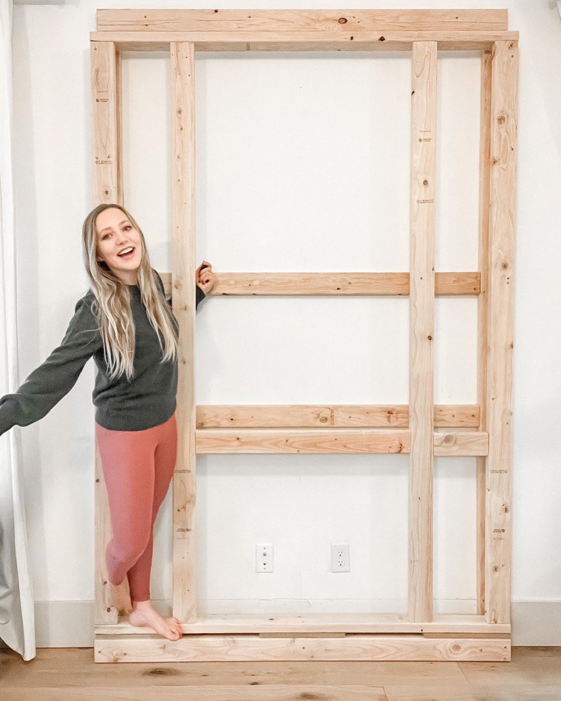I used 2x4s and 3” screws to attach everything together. The back part of the frame is screwed into the studs in the walls in about 80 different spots (ok, I’m exaggerating a bit) so it’s super secure.