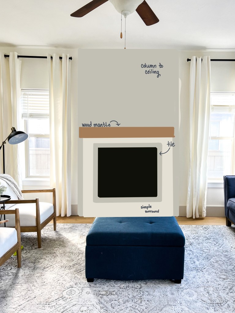 After spending a while dreaming up fireplace ideas in here, I finally decided to just do it – especially since I realized I would be able to complete it before Christmas! I drew out some plans on my iPad and got to work.