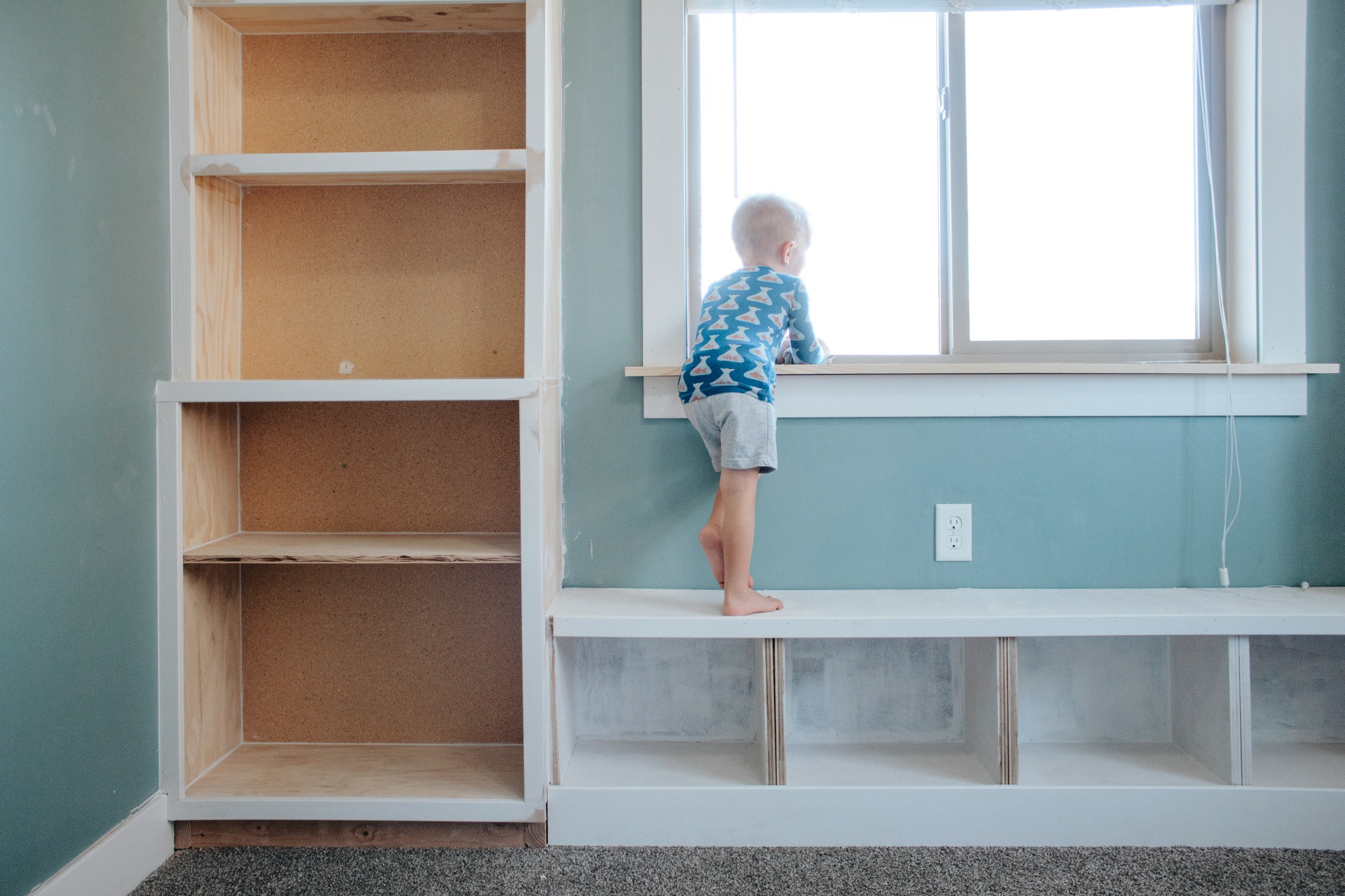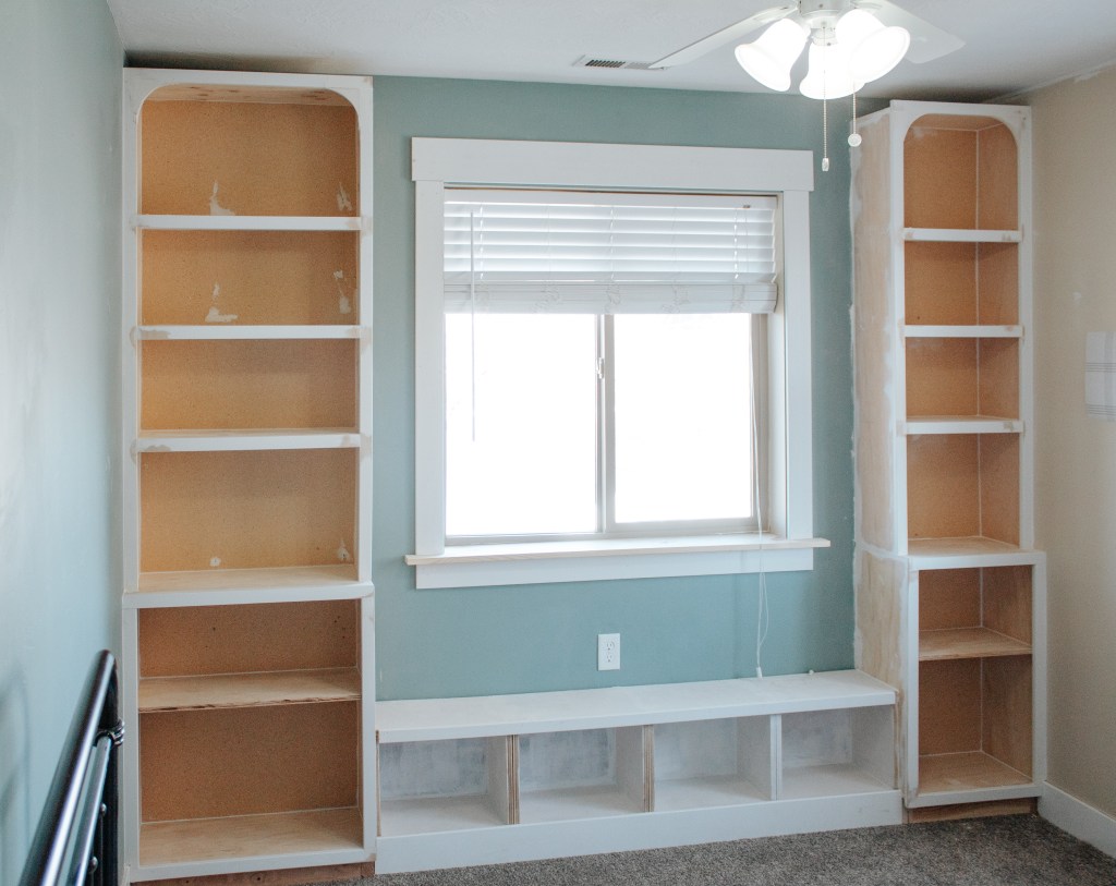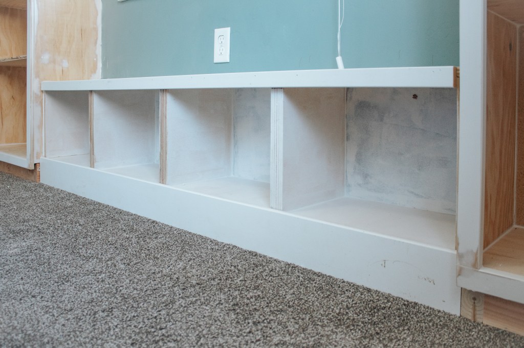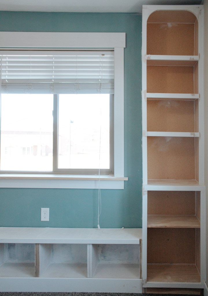 I built the window bench and somehow it took me about five times as long as it should’ve. Why? Who freaking knows. But it really did feel like ages. It has 4 cubbies that will be perfect for storing all of his books. Since he’s only 3, I wanted to make sure his stories – which, side note, he would read 24/7 if given the option – were easily accessible.
