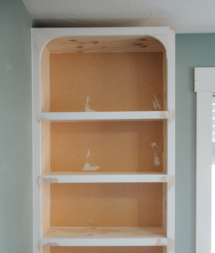 I trimmed out all the edges with 1×2 MDF boards, which is something that I highly recommend! It really beefs up the plywood and makes the whole thing look cleaner. The only spot that didn’t get a 1×2 is the shelf inside the cabinet – that will get edge banding. The trim isn’t finished on the bench yet, but that is happening today! Then I added the cutest little arched details because…well, why not? And I’m so glad I did! Don’t they add the perfect amount of character?
