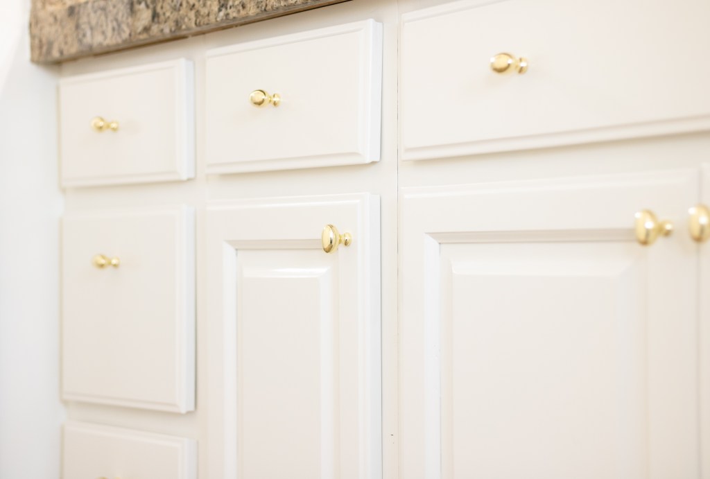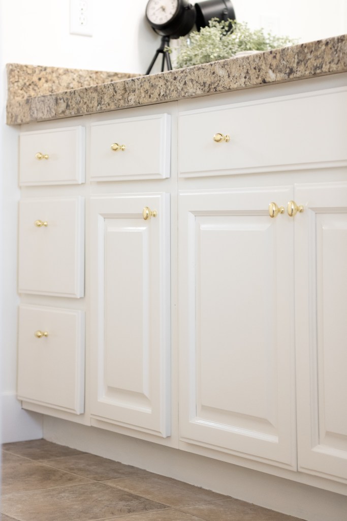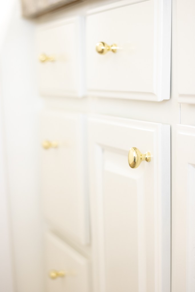 Painting bathroom vanities is basically the same as painting kitchen cabinets, the only difference is that it’s a project that is easily accomplished in a weekend. If you’re thinking about painting kitchen cabinets, I highly recommend starting off with a bathroom vanity! It’s a great way to practice and dip your toes in before committing to a bigger project.