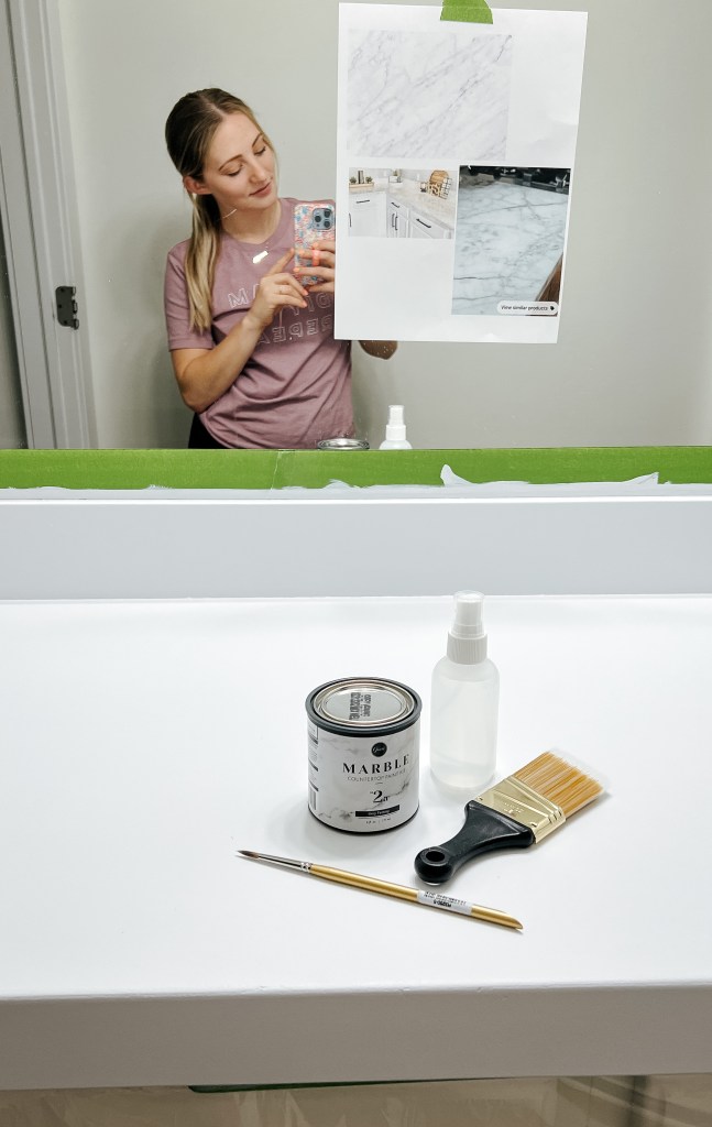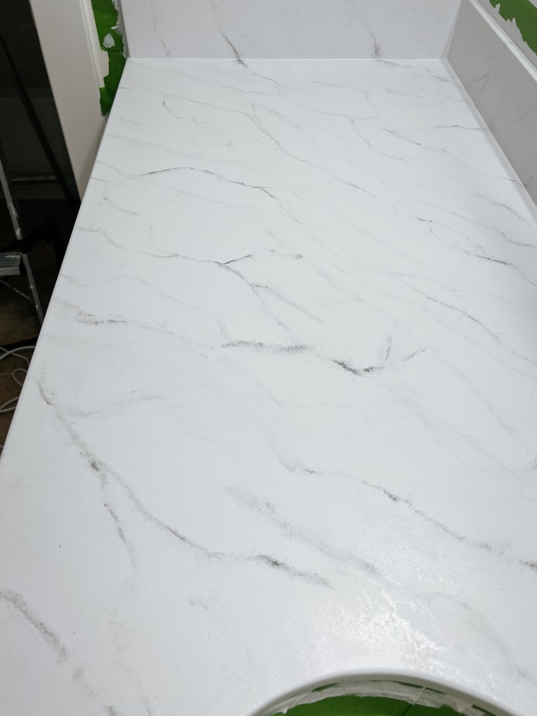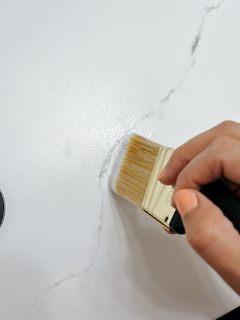 One thing that I was surprised about was that the kit has the primer as the base color. No additional paint on top, just primer and then veins. When I painted counters previously, I did like that I could add a little bit of a warmer white in and if I were to do this again, I think I would add in a few different whites for depth before adding the veining (even if I used the kti again). That being said, I’m super pleased with how this turned out so I think the kit is still a great option!