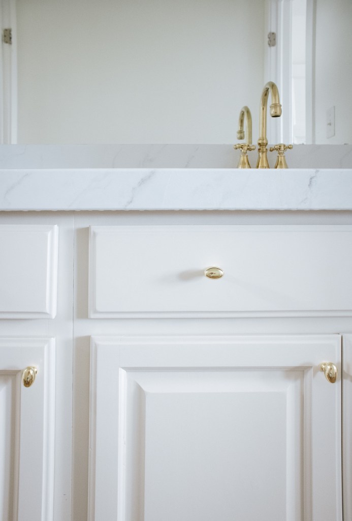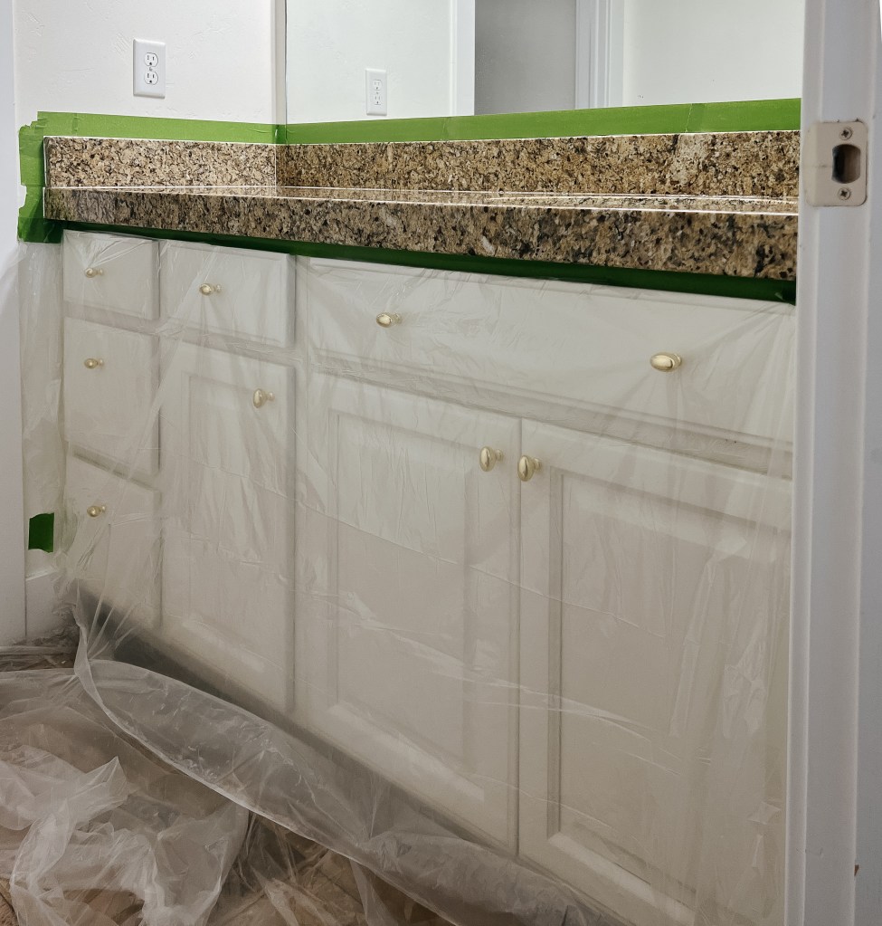 I know, I know. Painting over granite is controversial. And I promise you that I am not going make you to paint over your granite, but if you don’t love it… I’ll totally be your hype girl! The thing about updating your home is that you should do what you love. Not what someone else loves and not even what gives you the highest ROI, necessarily. Do what makes you feel happiest and most excited about the space that you’re in. This brown granite was just not the vibe I wanted in this bathroom but the faux marble? Heck yes! I’ll be sure to keep you updated on how it holds up, but so far I have zero regrets!