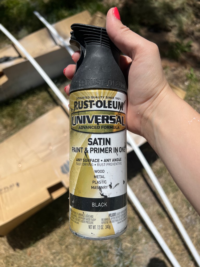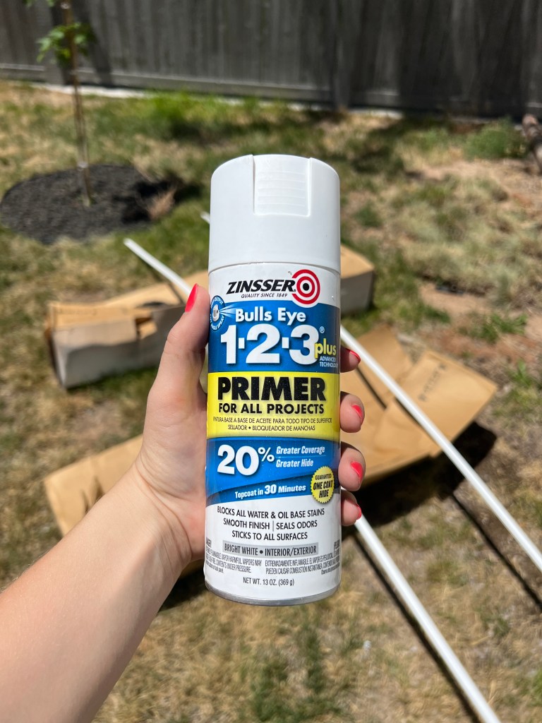 Even though the spray paint says it’ll adhere just find to plastic, I decided to prime the screen molding first for some extra durability. I like using spray primer for projects like this because it’s fast and you don’t have to worry about brush strokes! I did a coat of primer on the front and on the back, making sure to hit the sides as well.