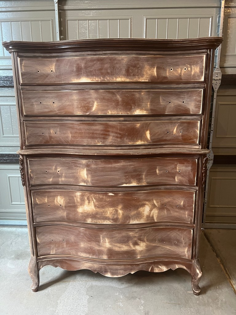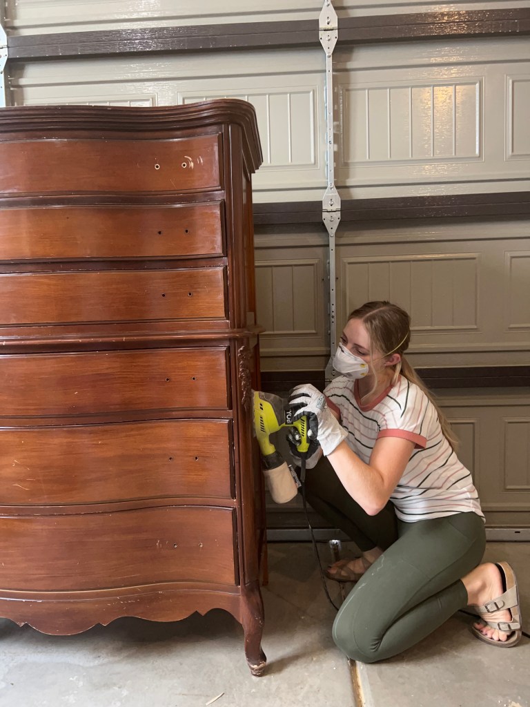 Then you need to sand. One option is a liquid sandpaper/deglosser. This is a great option, but it for me sometimes it feels a little more tedious/time consuming than sanding, just depending on the size of the piece.