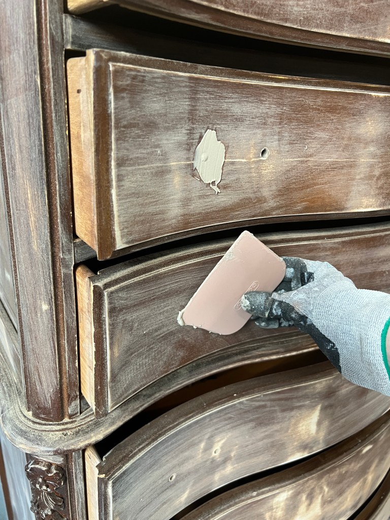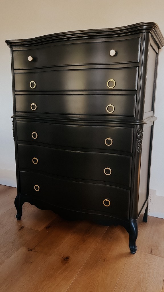 What furniture flip is complete without new hardware? Replacing hardware is such an easy way to elevate a piece. There are so many good (and affordable) choices on Amazon. For this dresser, I used these knobs and these pulls.