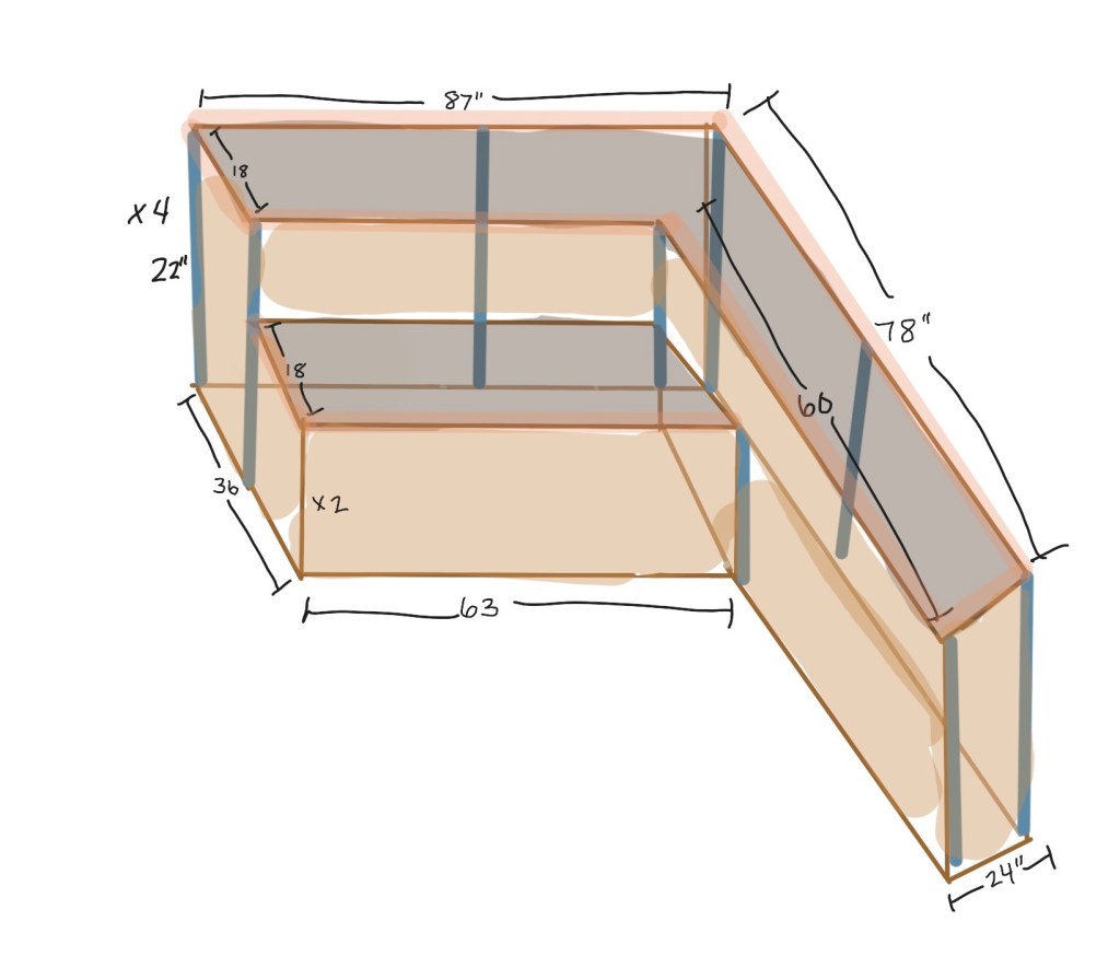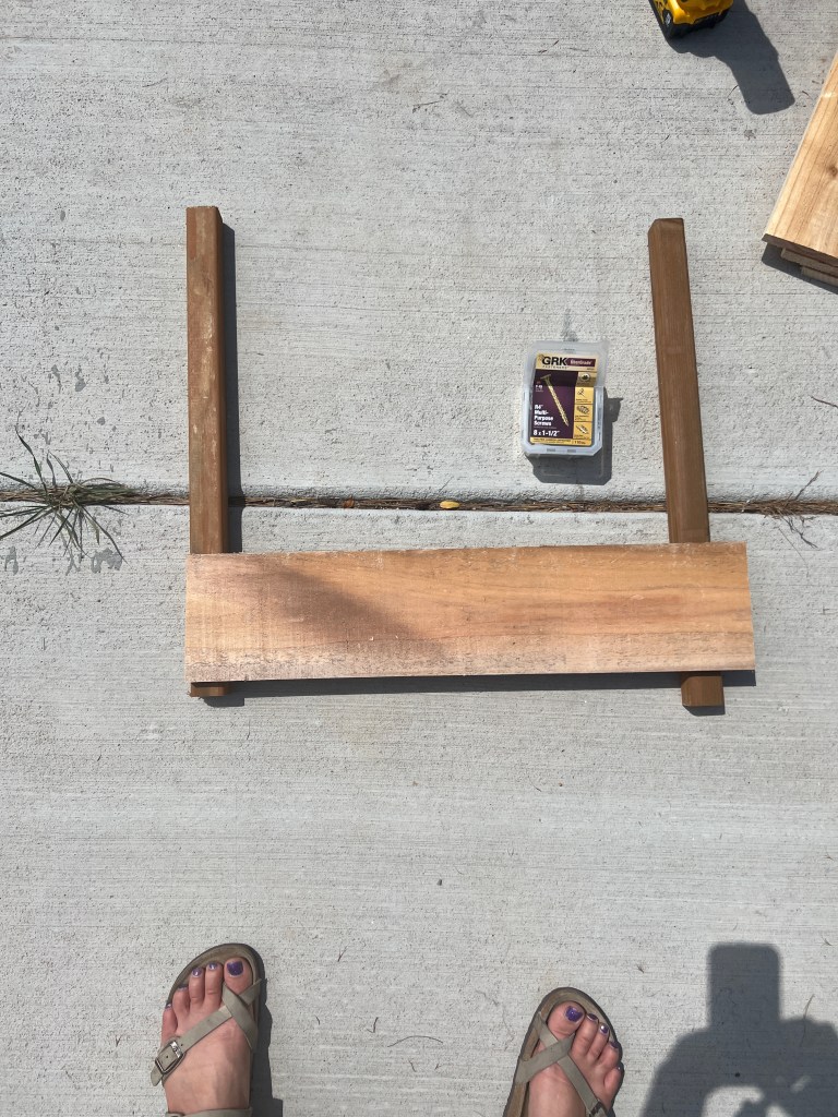 I’m going to walk you through the steps of building the small box, but know that I used the same method for the big one! The only difference is that on the inside corner of the L, I screwed the boards directly together instead of using a 2×2 post.