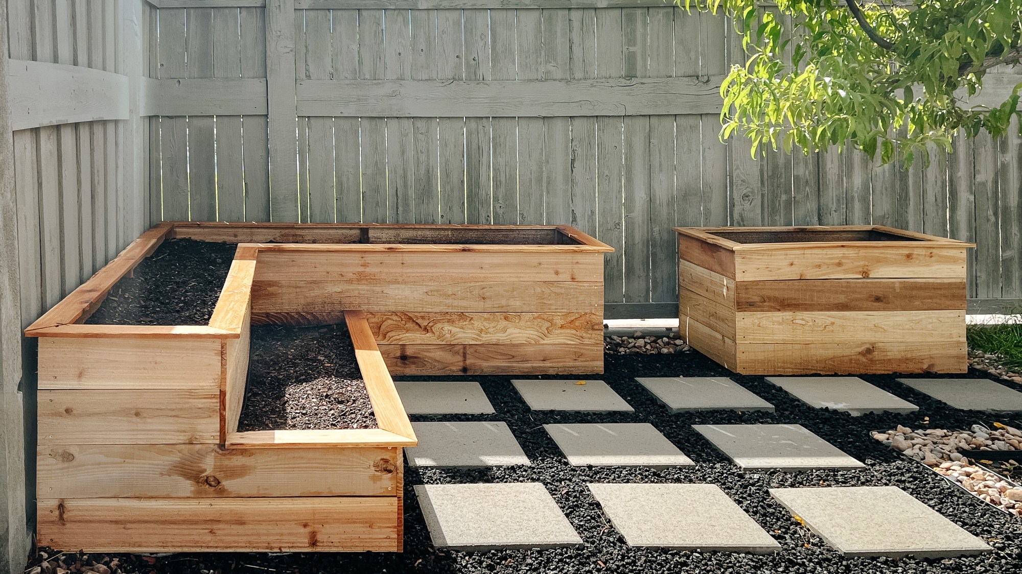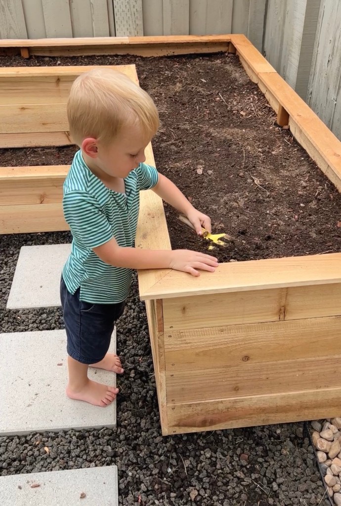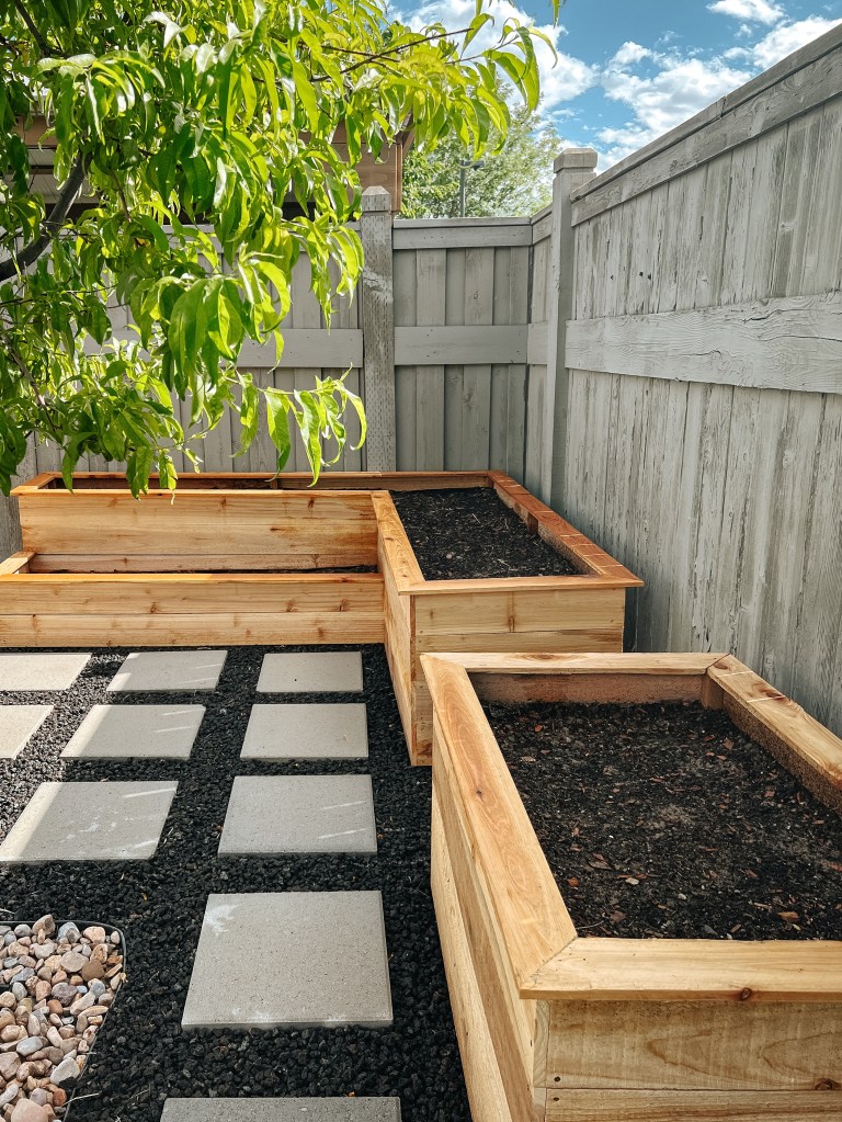 I finally got around to building them (which, thank goodness because we’ve had piles of dirt in our yard waiting for a home) and the build was so much easier than I expected! The small one cost me less than $50 and the big one was about $150, which is super inexpensive considering the cost of wood these days!