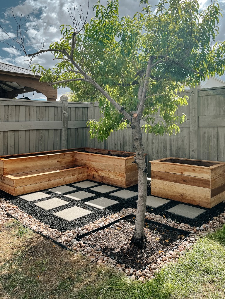 Our backyard is currently still in an it has to get worse before it can get better phase, but this corner has made HUGE progress in the last few weeks. It wasn’t really that bad when we bought our house, but stylistically it just didn’t do anything for me and I’ve been slowly working on getting it to look how I want. I planted a few trees, redid a flower bed, and then earlier this summer I removed three giant planter boxes that went along the side of our yard with the intention to turn the back corner into the garden.