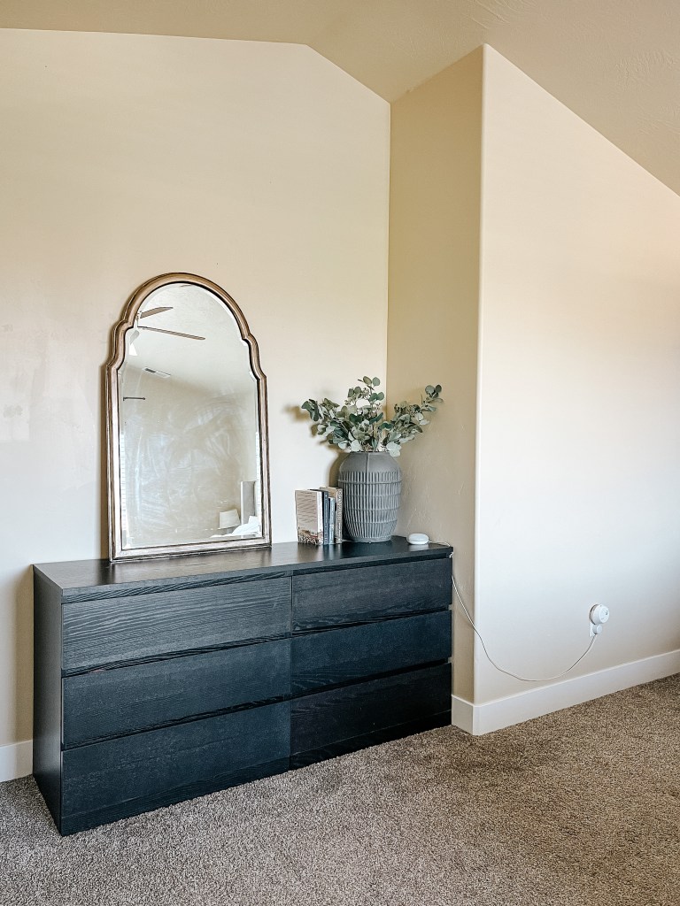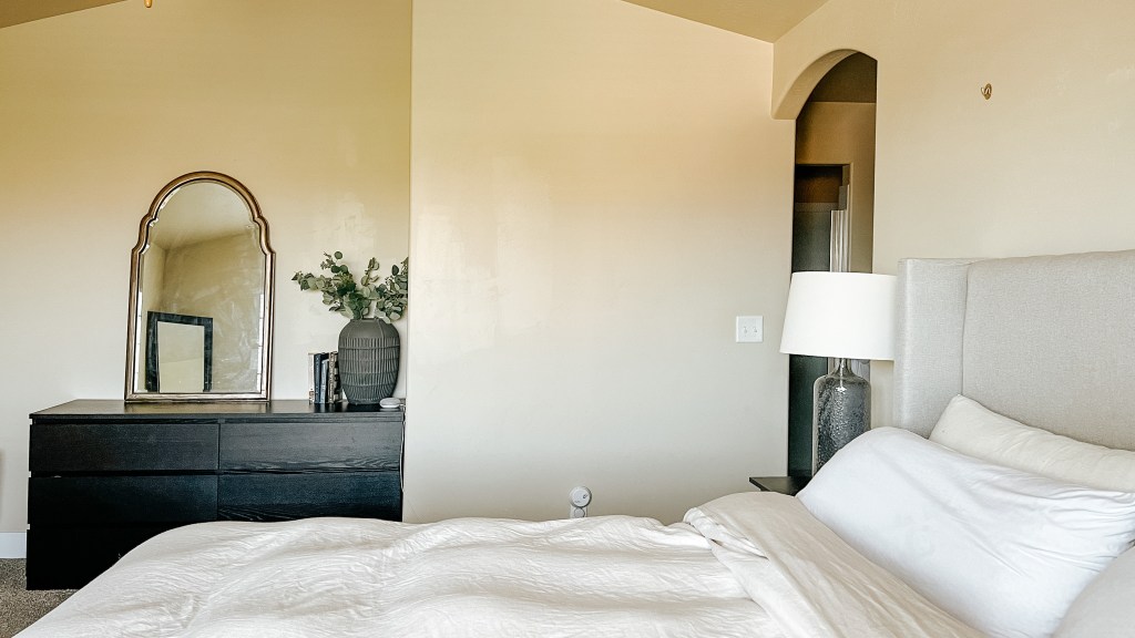 I also want an accent wall, but the arched entry into the primary bathroom was throwing me for a loop. I had a hard time wrapping my brain around what exactly I wanted to do with an accent wall around an arched opening and unfortunately, that really is the only wall that makes sense for the bed to go on. I have a few ideas now, but I’m still mulling them over. When the right plan comes to me, I’ll know it.