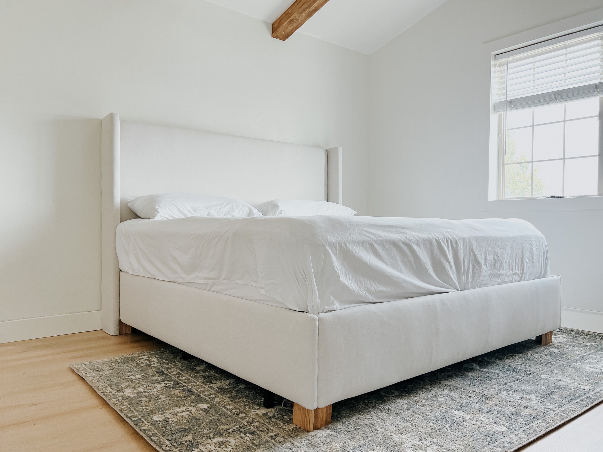 I love the look of a full upholstered bed – the warmth, softness, and (you guessed it) coziness is everything I want for our primary bedroom. But do you want to know what I don’t like about upholstered beds? The price tag!