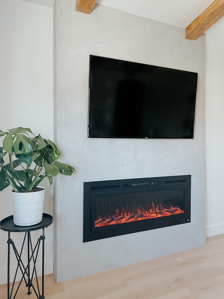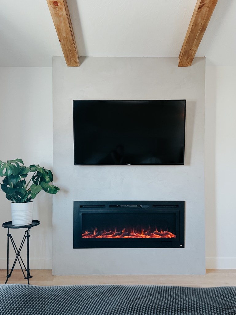 I never thought I would have a TV in my bedroom. My parents never did and I never understood the appeal. Now, one of my absolute favorite things to do is curl up in bed and watch a show with Jordan. With the fireplace done, it’s made our nighttime routine even cozier!