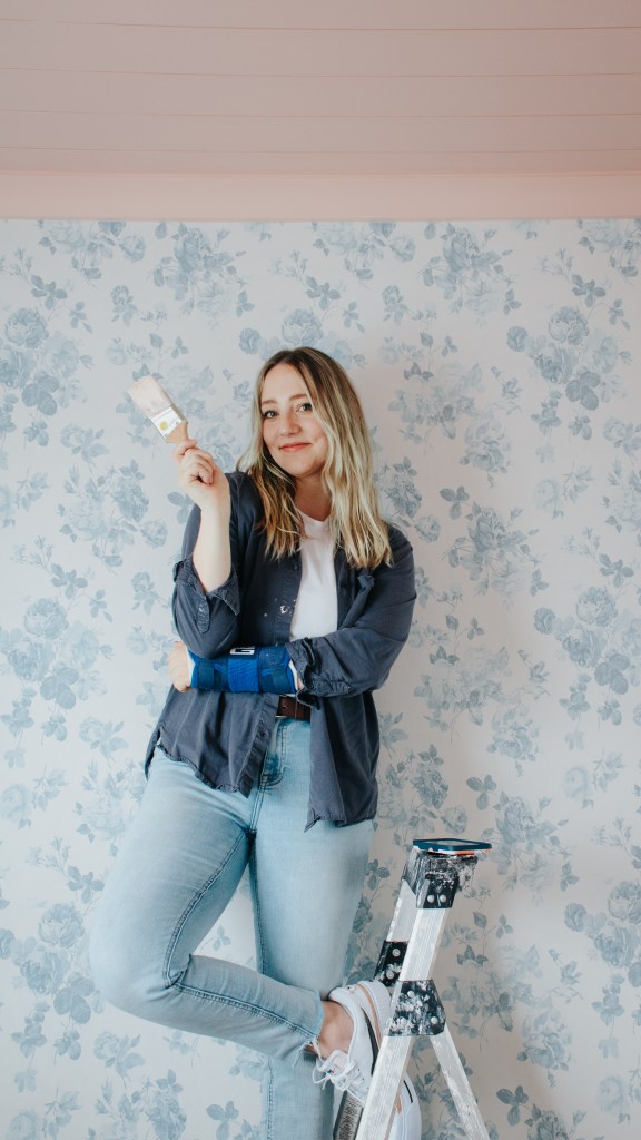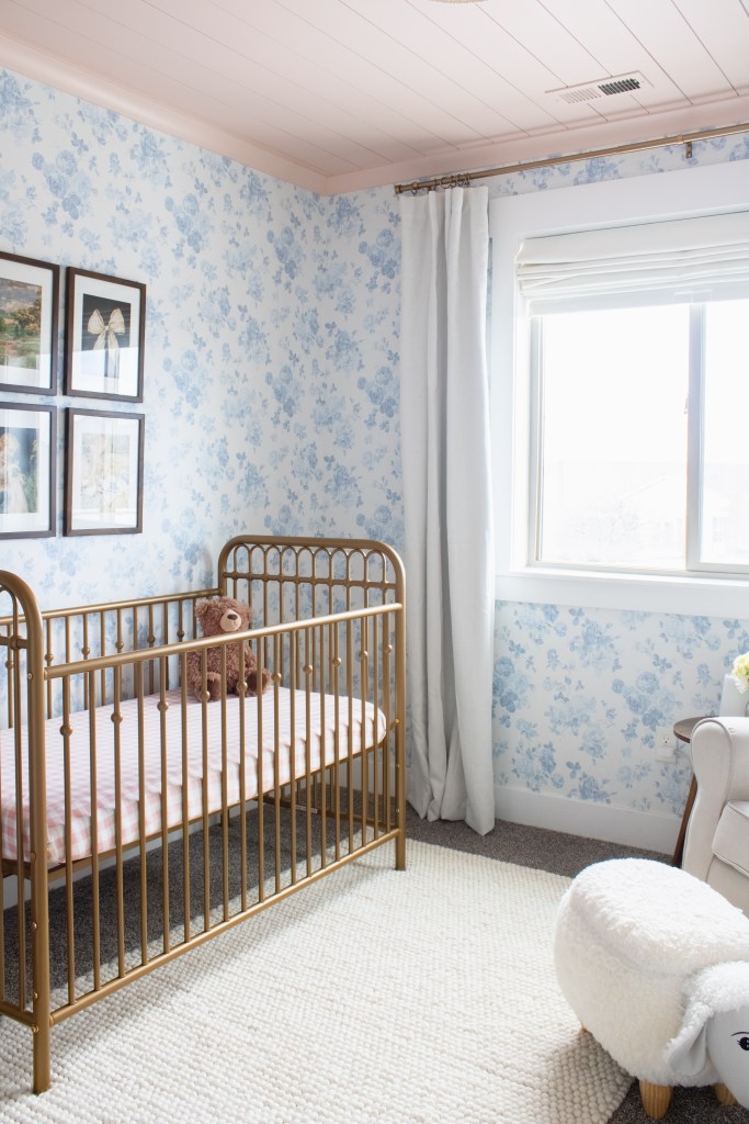 To be completely honest, when I was first trying to design this room I had a really hard time deciding what I wanted to do. Once I decided on this wallpaper and a pink shiplap ceiling, everything else just fell into place.