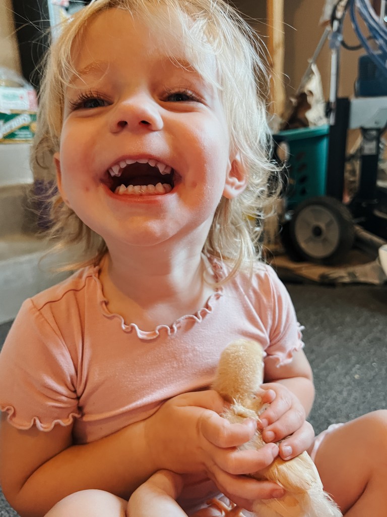 Jordan came downstairs and I told him the plan that Elliott and I had hatched. He said he didn’t hate the idea, but thought that maybe we should wait until next year since I was five months pregnant with Vi at the time. Well, guess what? Three days later we had six cute baby chicks!