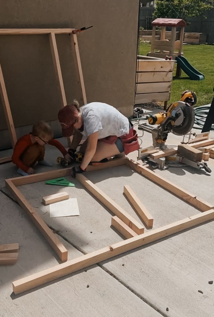 I knew the chicks would outgrow the brooder box in our garage quickly, so I had to start on building the coop ASAP! I started clearing a spot for them in the backyard and found these coop plans on Etsy. Most of the time when I build things I create the plans from scratch, but I have to admit it was super nice having all of the math done for me. I still double checked everything as I went, but not having to draw blueprints was amazing. I honestly don’t know why I haven’t bought building plans before!