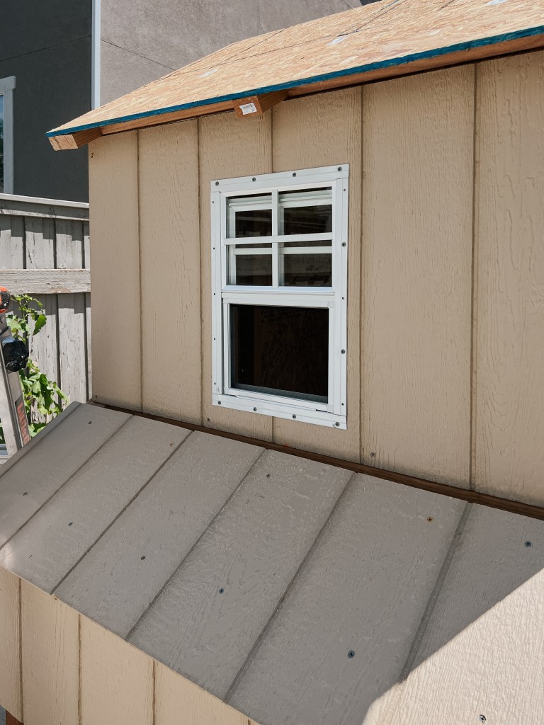 Ventilation is super important in a coop (I learned), so we added these windows. I recommend replacing the screen with hardware cloth to keep it more predator proof, but I don’t have any photos of that.