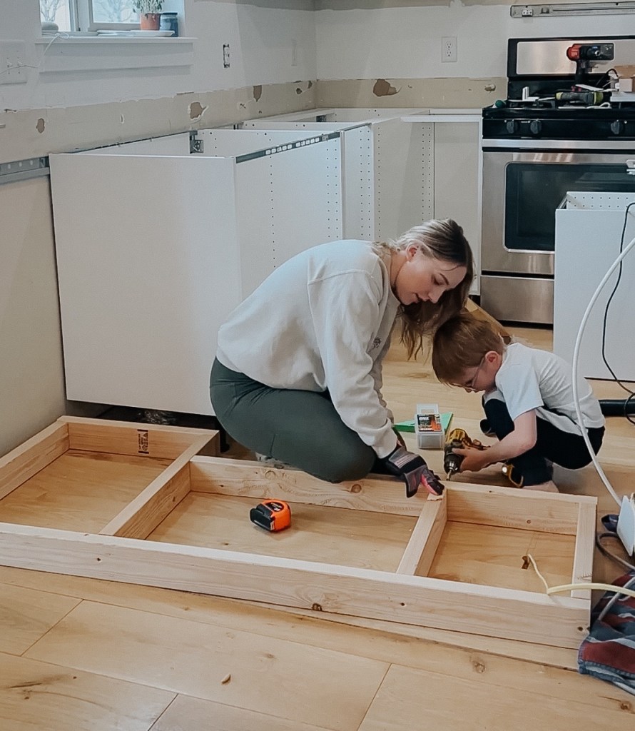 The biggest thing to keep in mind is to make sure the cabinets are square! Before you nail in the back panel, you’ll check the cabinet and wiggle it around a little to make sure that it is square. Do not skip this step! Once you’re hanging the cabinet, it’s crucial that they be square.