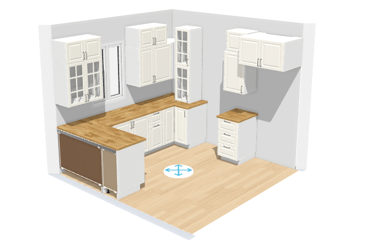 I also played with making it a corner cabinet there, but I’m not a huge fan of corner cabinets. And after looking through a ton of inspiration photos and going to IKEA to look at the corner cabinet in person, I doubled down on my opinion of them. So this wasn’t a good option either.