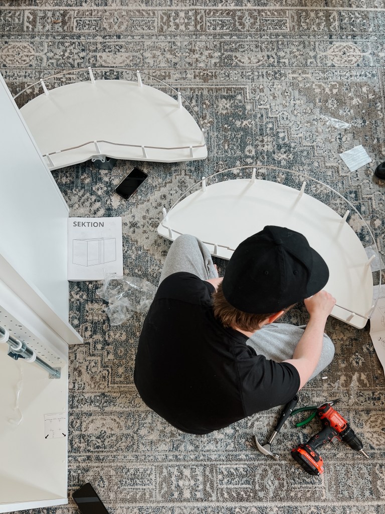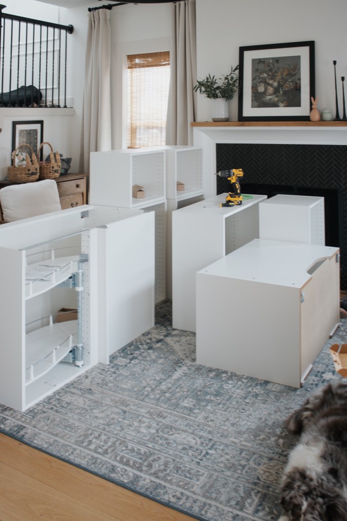 I was dreading putting all of these cabinets together – it seemed like such a daunting task! I invited my family over one Saturday and we got all of them built in one day! Even though the assembly instructions say it is a two person job, once you get the hang of it it’s pretty easy to do it solo.
