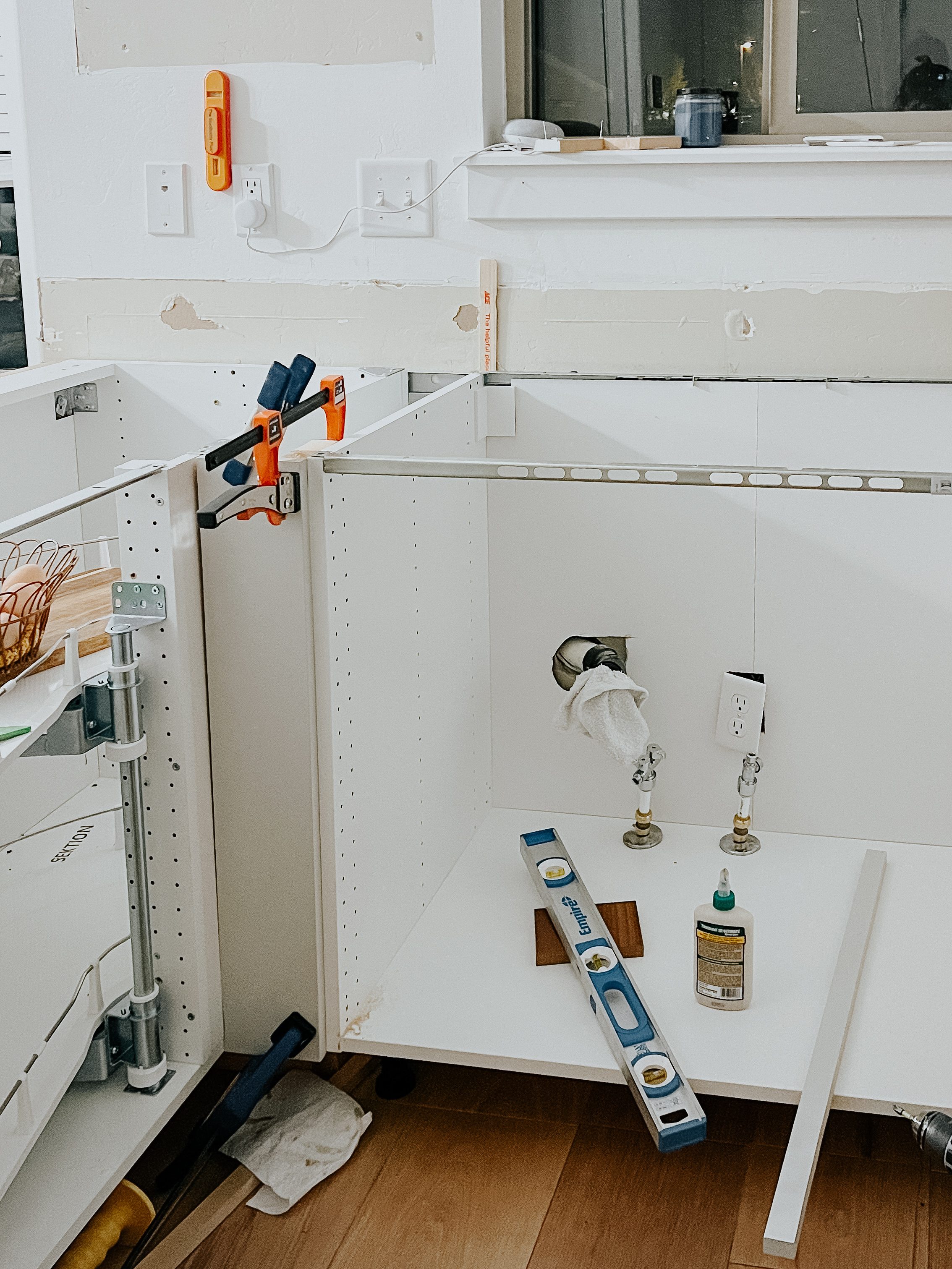 I also added end panels on the bottom of each cabinet so that it looks fully inset!
