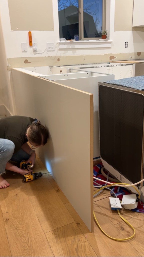 Any small gaps between the end panels and the wall will be covered by backsplash or I’ll caulk it, and I also need to caulk a few places where the filler pieces meet, but those are details I can address later, haha!