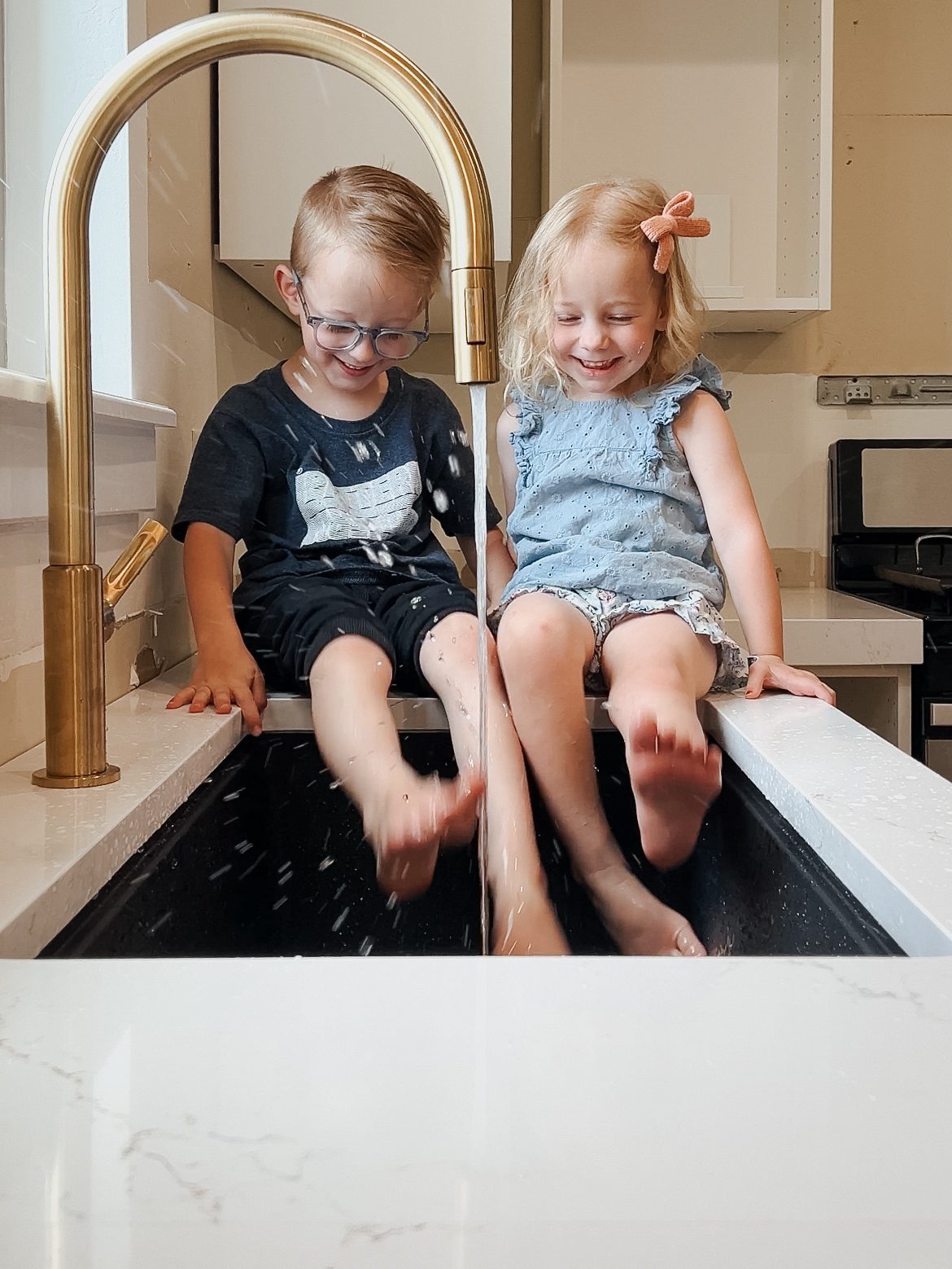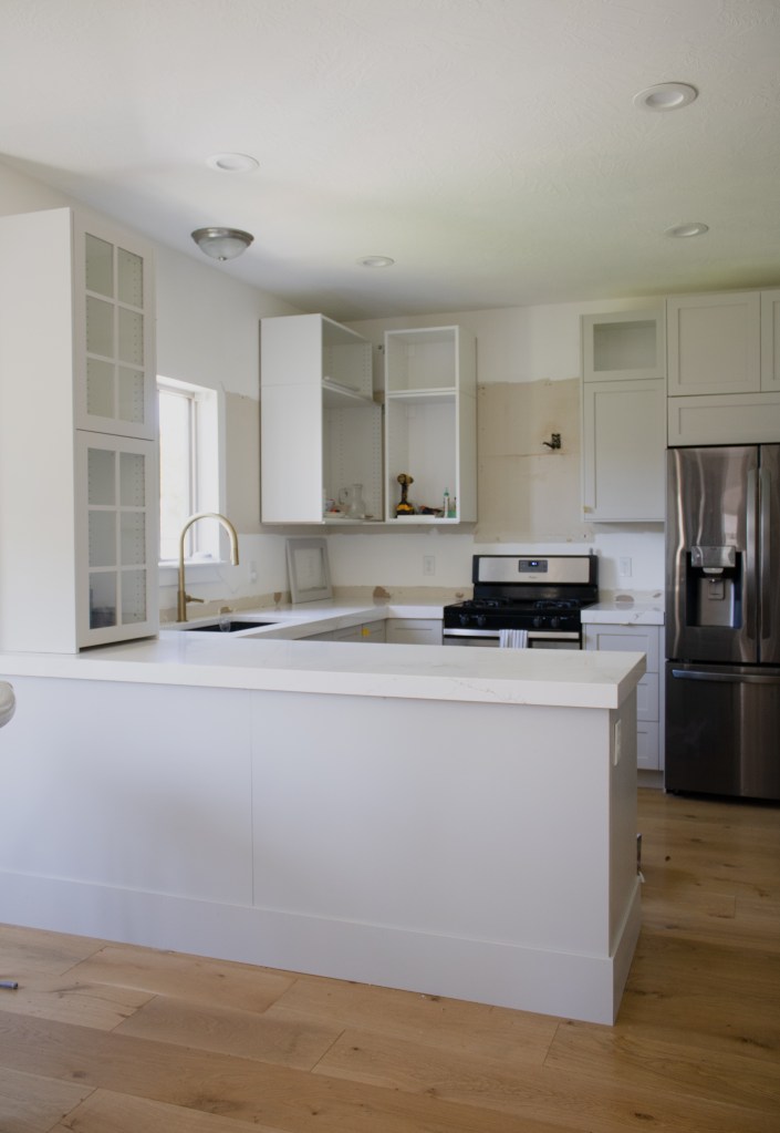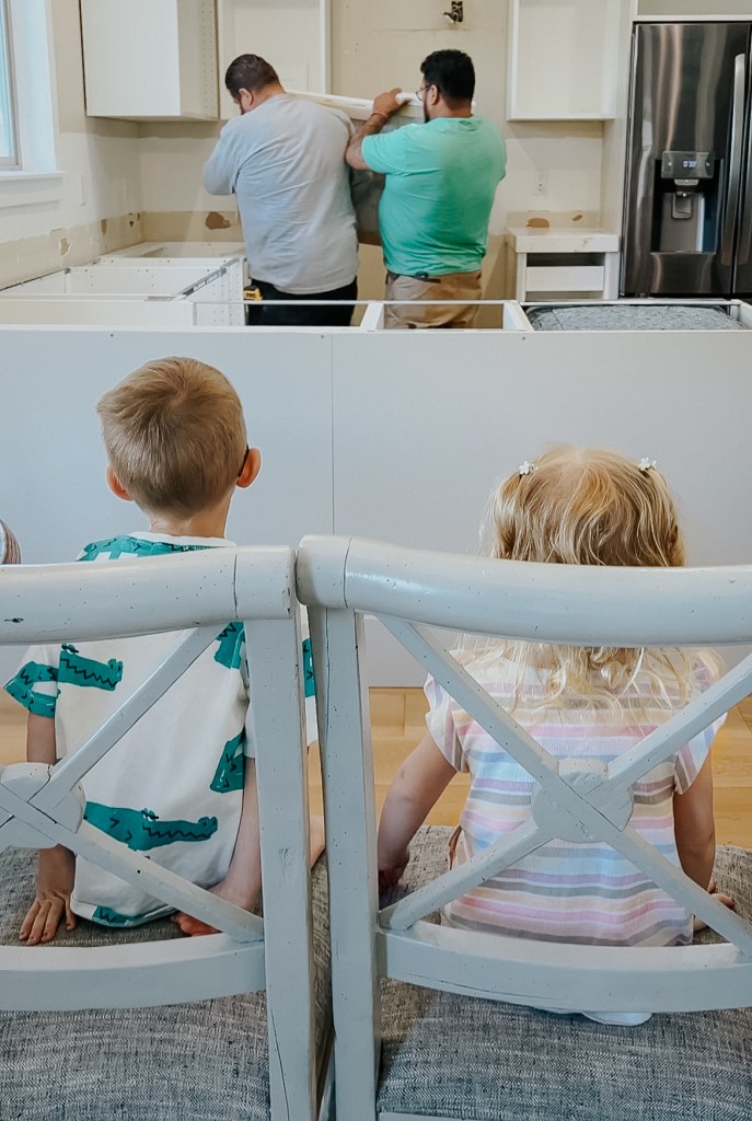Because our sink couldn’t go in until the counters went in, we did not have a functional kitchen for 45 days. 45 days! It was absolutely hectic and overwhelming to try and feed my family without a kitchen (we did a lot of take out and rotisserie chickens and ate exclusively from paper plates). It was fun at first to go to restaurants and not have to cook, but it got old pretty quickly.