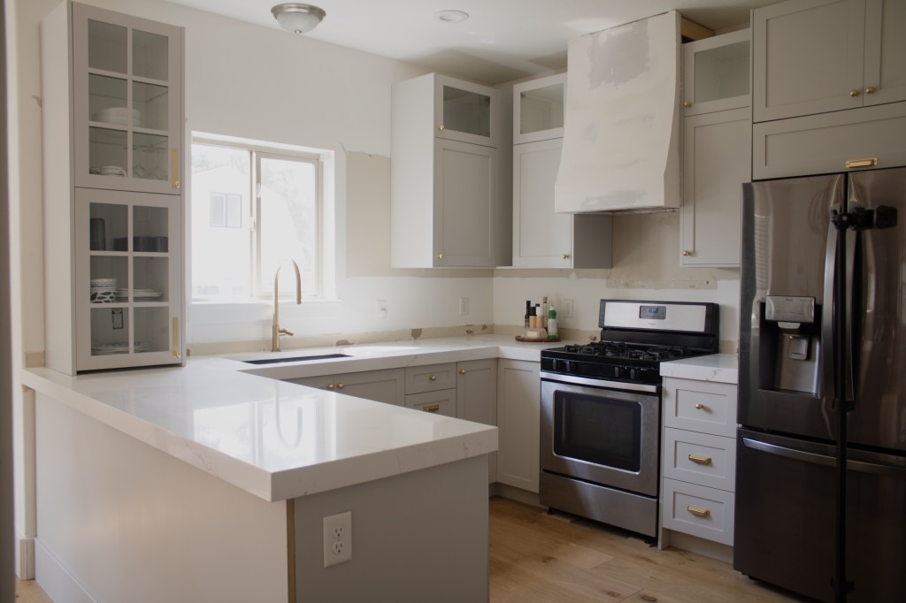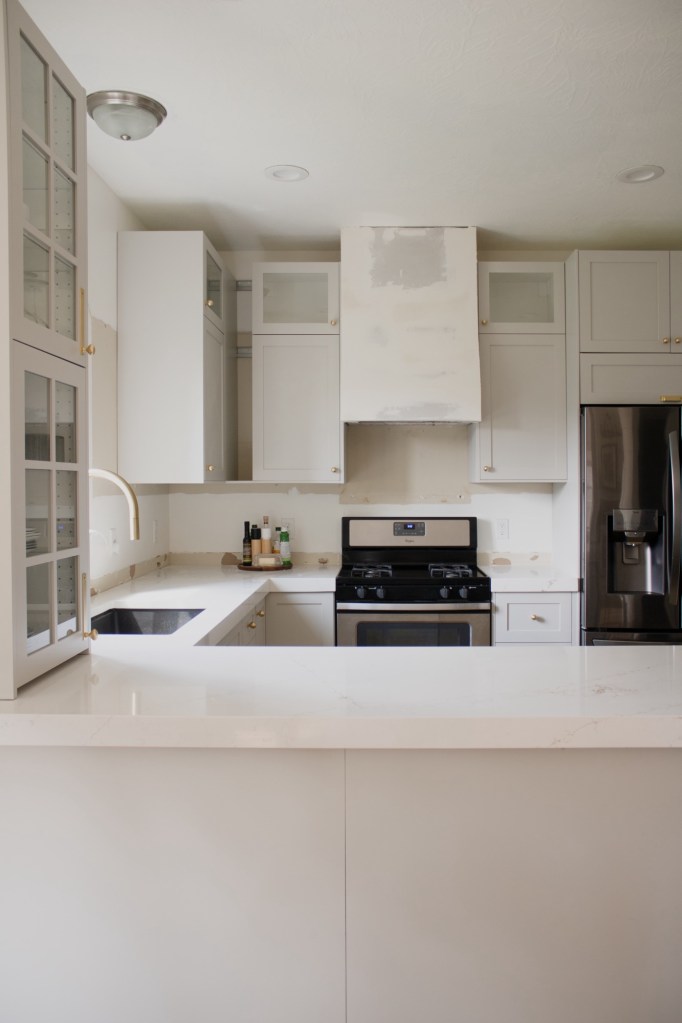 I have a few more updates on the kitchen that I’ll be getting to you ASAP! I’ve installed the backsplash, crown moulding, and of course that beautiful hood vent that you can see in these photos! Stay tuned and be sure to subscribe!
