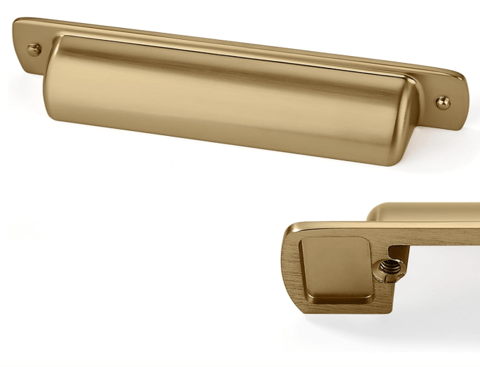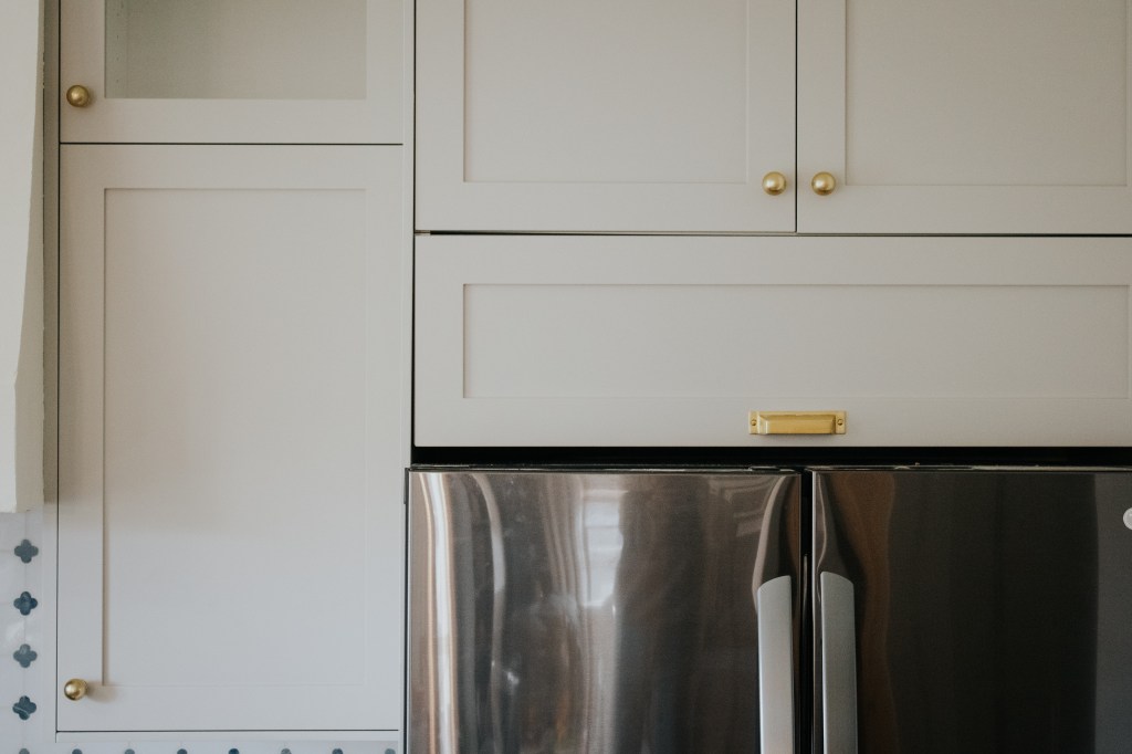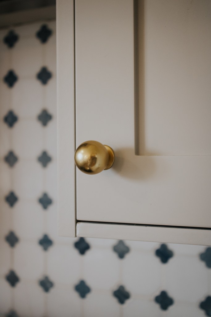 I went far too long using painters tape as pulls in this kitchen, and before that I went far too long with hardware that I really didn’t like in the original kitchen! Swapping out (or installing) hardware cabinets is such a great way to make a huge difference in any kitchen project. I knew from the get go that I wanted to splurge on hardware in here to elevate the project.
