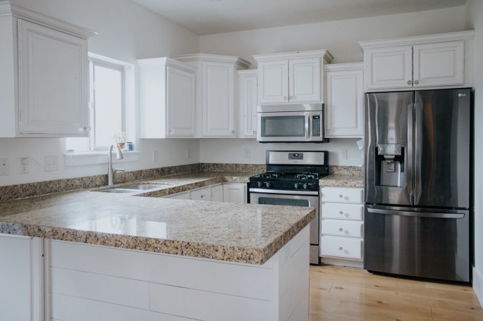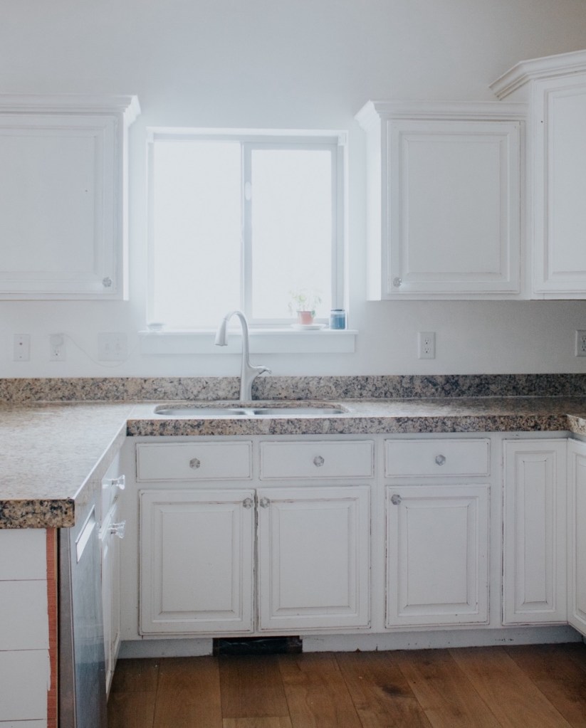 This kitchen just wasn’t doing it for me. It was honestly before we painted the walls white because while they were still brown, at least there was some contrast. The rustic chips on the paint (because I’m 99% sure they’re intentional) are not my style and the varied cabinet heights left so much unused vertical space. Plus the brown granite counters. Give me something that I can actually see the mess on so I know when it’s dirty, you know?