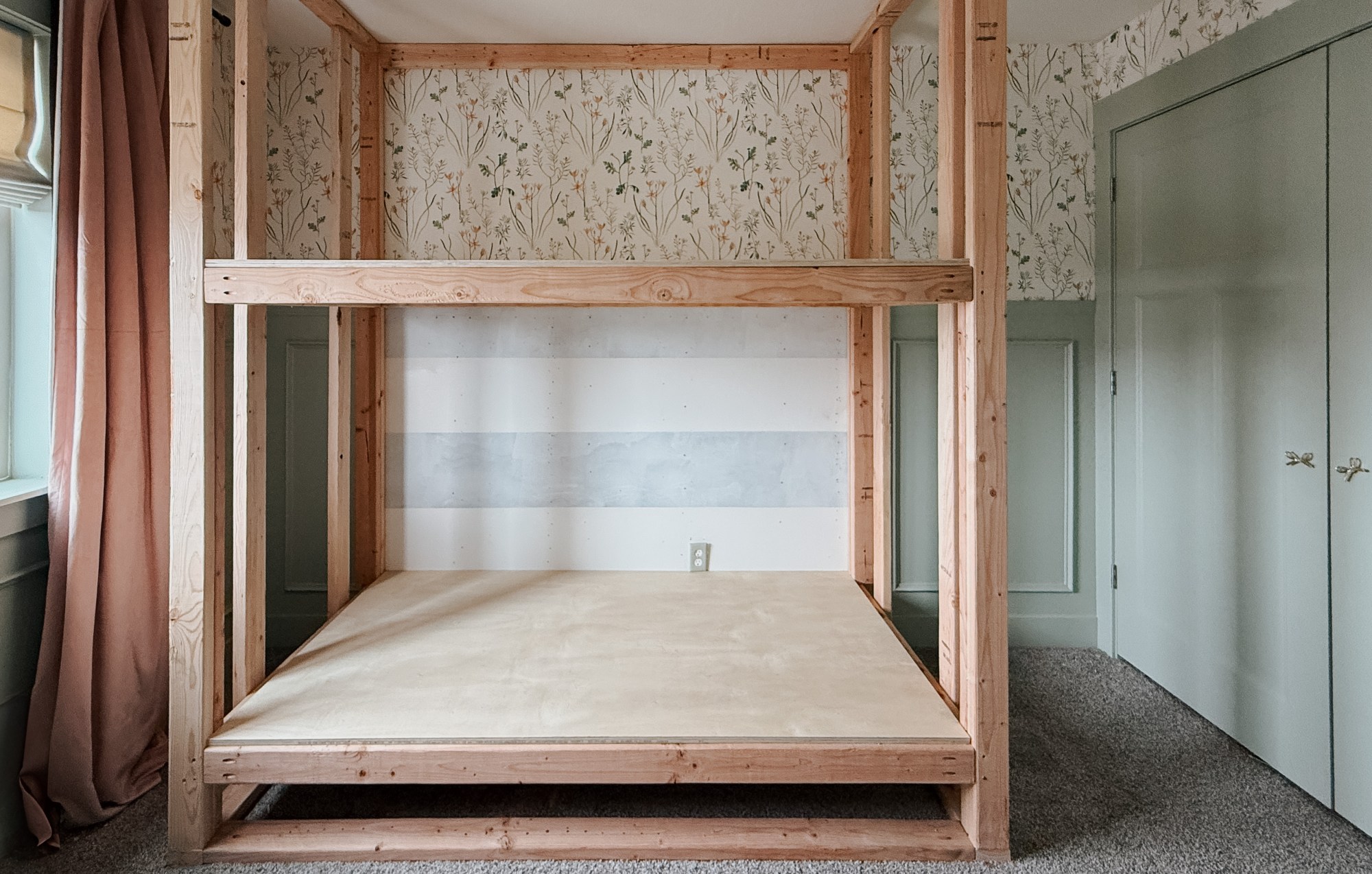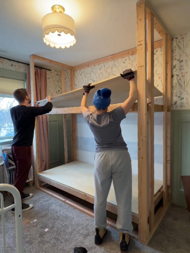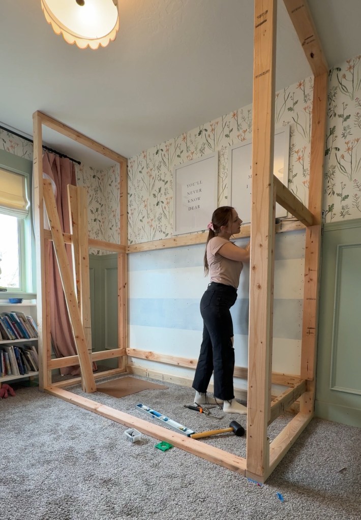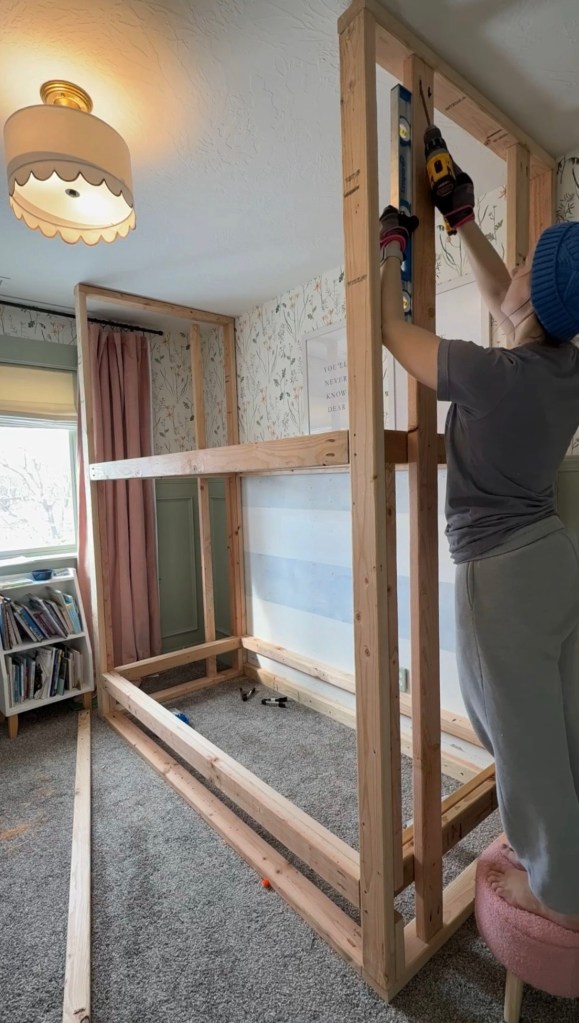 These are twin over twin bunks. While her bedroom is the biggest kids room in the house, there is still not enough room for a full bed or even a twin XL, really, so I’m keeping it simple and doing twin over twin.