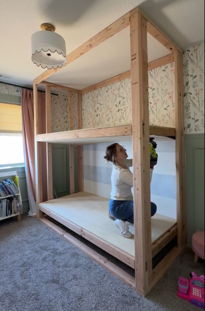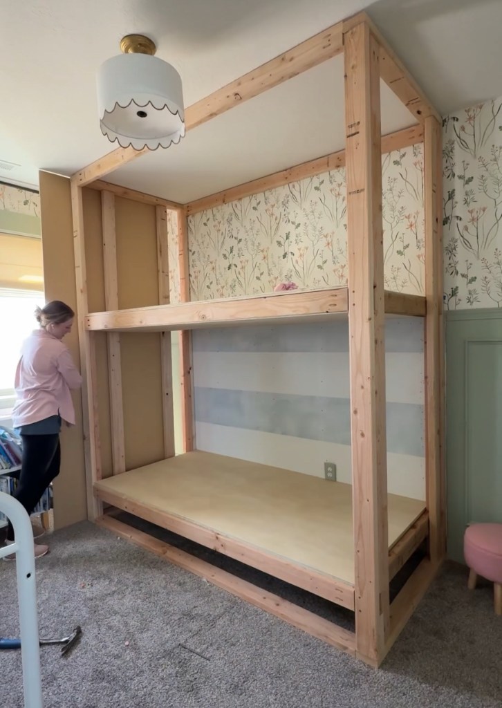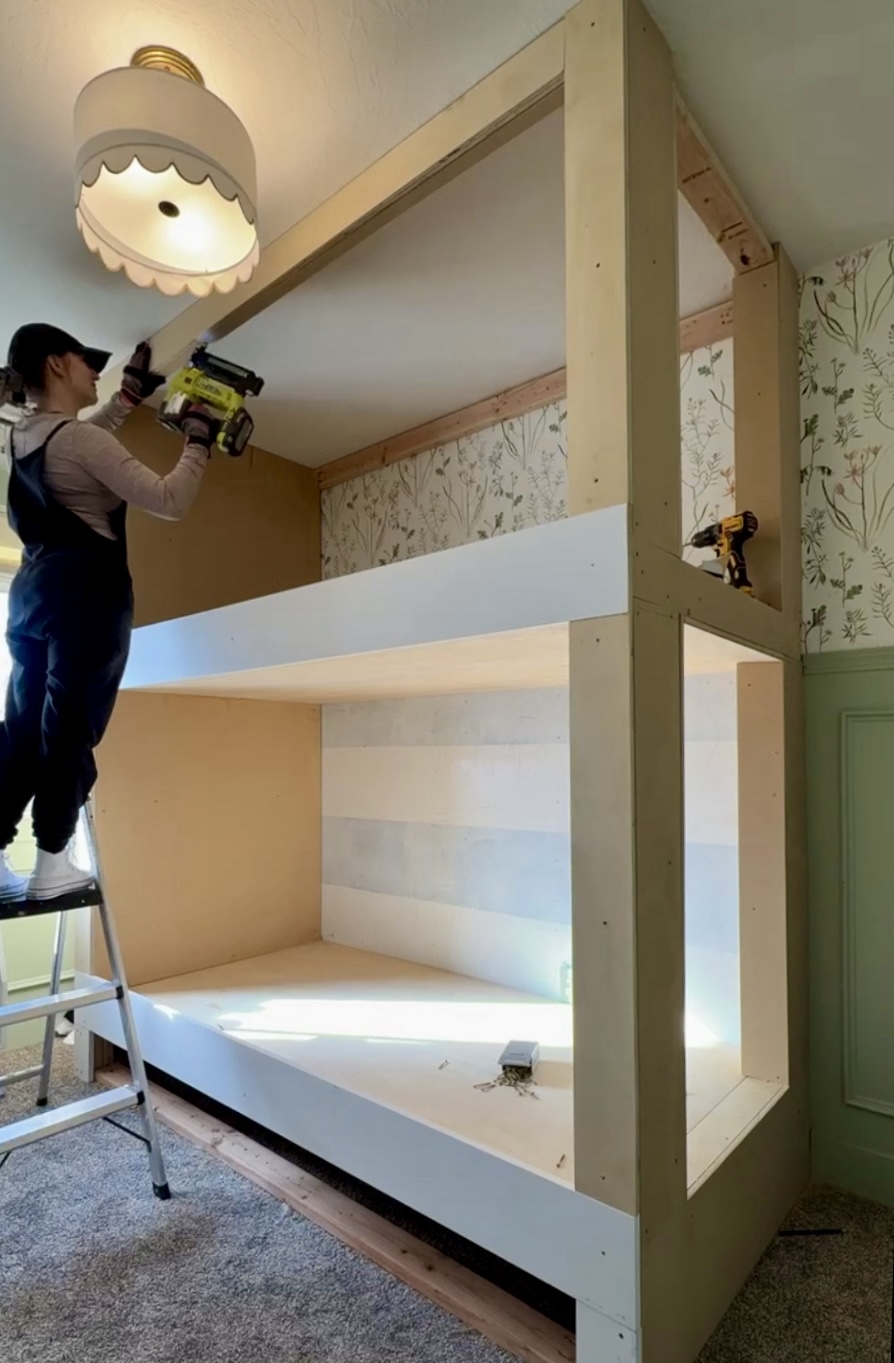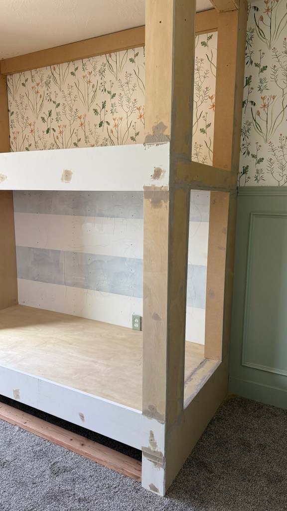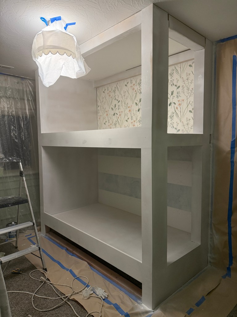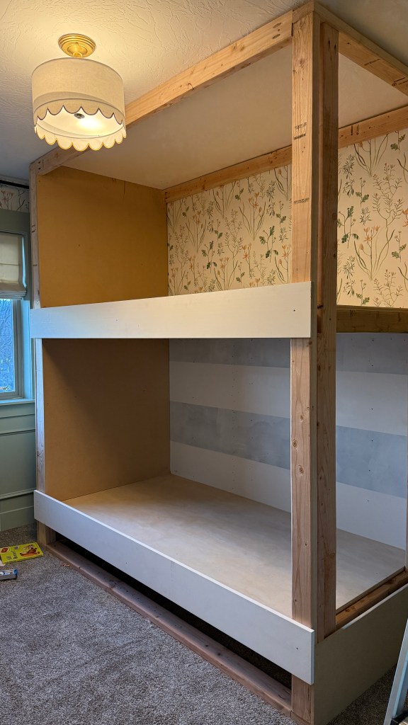 Stay tuned for those finishing touches, including adding drawers under the bottom bunk!