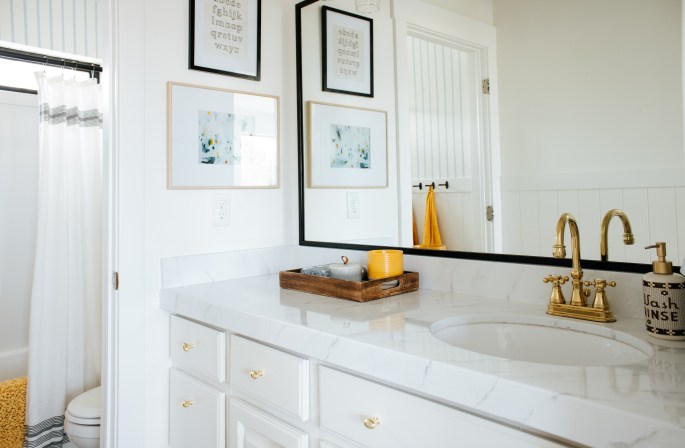 This bathroom was a whirlwind of a project! 3 weeks and a whole lot of paint later, this brown bathroom completely transformed into the light and airy kids’ bathroom of my dreams and I’m over the moon about it. Want to see what projects I’m working on now? Follow me on Instagram! Before, this bathroom … Continue reading Kids’ Bathroom Reveal